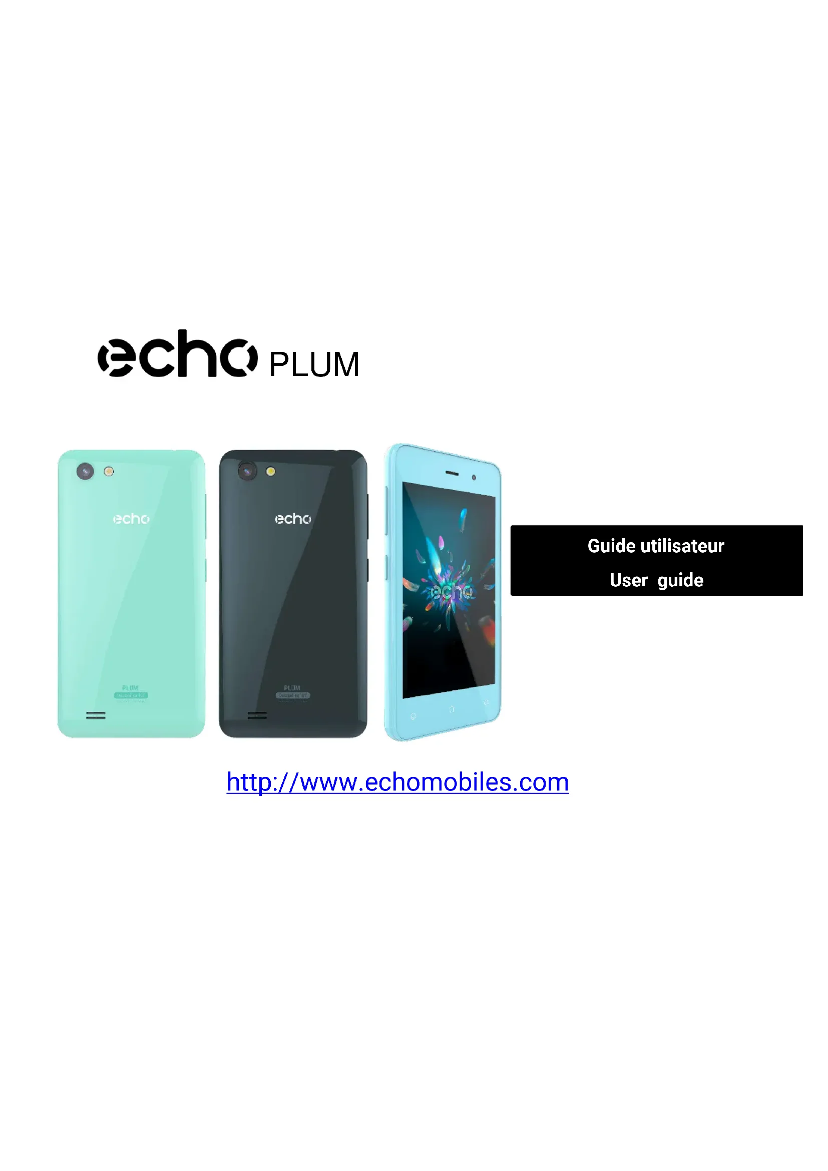 http://www.echomobiles.com Guide utilisateur User guide PLUMGuide utilisateur Le descriptif de ce guide peut contenir certaines différences avec celui de votre téléphone en fonction de la version du logiciel ou de votre opérateur. PLUMFÉLICITATIONS! Avis Ce manuel a été réalisé avec la plus grande attention et a pour but de vous guider dans l’utilisation de cet appareil. Les informations et recommandations qui y figurent ne constituent cependant pas une garantie au sens des articles L211-4 et suivants du Code de la Consommation. ECHO se réserve le droit de modifier à tout moment les informations contenues dans ce manuel. Vous venez d’acquérir votre mobile ECHO PLUM. Vous trouverez dans ce guide toutes les informations relatives à l’utilisation de ce téléphone portable afin, nous le souhaitons, de vous familiariser rapidement avec l’univers ECHO. Copyright ©2017 ECHO www.echomobiles.com Les informations contenues dans ce manuel ne peuvent être en aucun cas transmises ou reproduites sous quelque forme que ce soit et sans l’autorisation écrite de ECHO. Limite de responsabilité L’intégralité des services et contenus accessibles de- puis cet appareil sont la propriété exclusive de tiers et sont donc protégés par des lois (Droit d’auteur, brevet, licence, et autres lois sur la propriété intellectuelle). Ces services sont réservés à votre usage personnel et non pour une utilisation commerciale. Il est impossible d’utiliser ces contenus ou services sans demande écrite au propriétaire du contenu. Vous ne pouvez en aucune manière copier, publier, transférer, vendre ou exploiter sur quelque support que ce soit, des contenus ou des services édités par le biais de cet appareil ou d’en produire des formes dérivées. Marques commerciales ECHO est une marque déposée de Modelabs Mobiles SAS.LES SERVICES ET CONTENUS DES TIERS SONT DELIVRÉS EN L’ÉTAT. ECHO NE GARANTIT PAS LES CONTENUS OU SERVICES AINSI DÉLIVRÉS, QUE CE SOIT DE MANIÈRE EXPRESSE OU IMPLICITE, À QUELQUE FIN QUE CE SOIT ; IL NE GARANTIT PAS