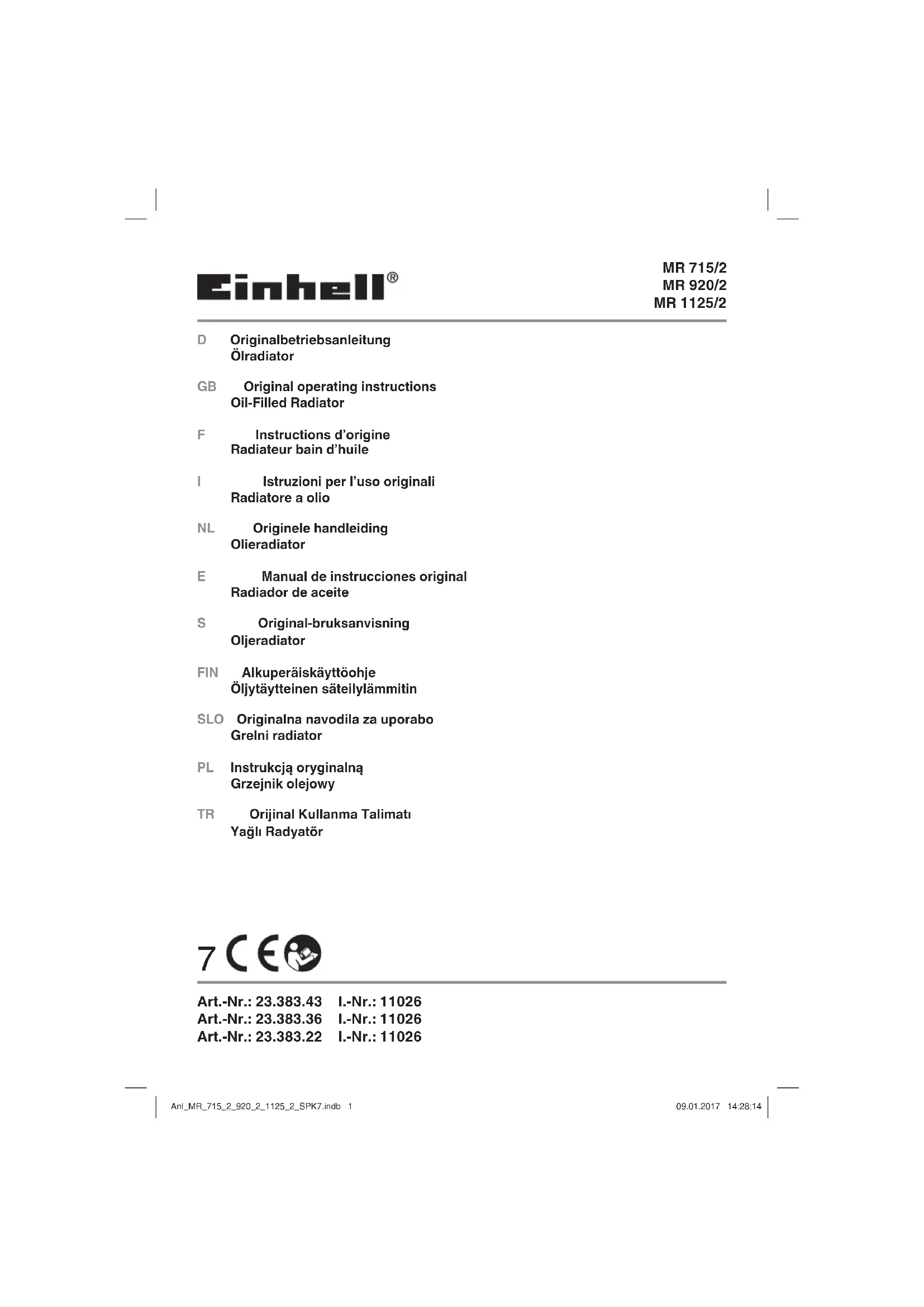 MR 11252 - Chauffage EINHELL - Notice d'utilisation et mode d'emploi gratuit