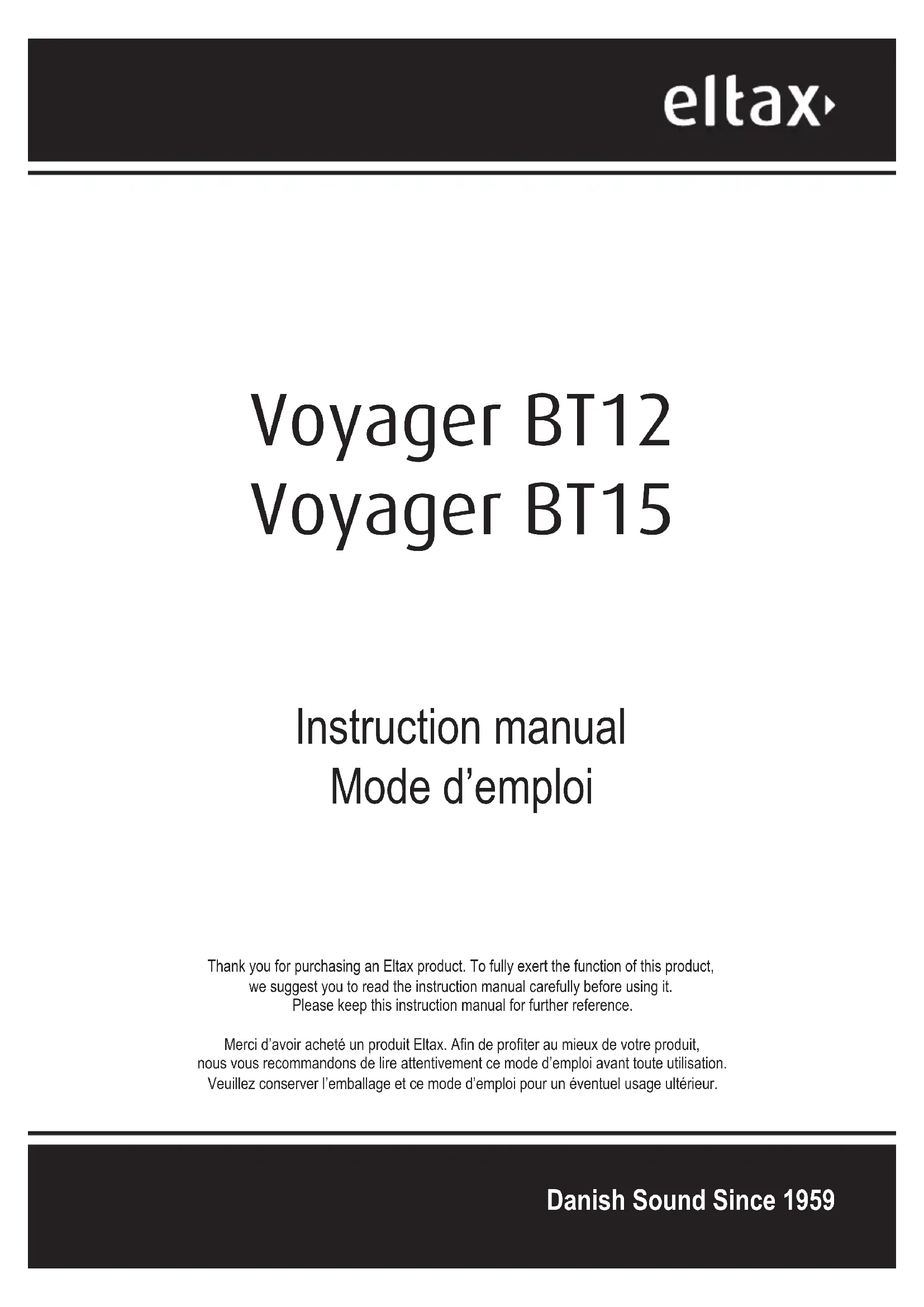 MODE D'EMPLOI Voyager BT 15 ELTAX