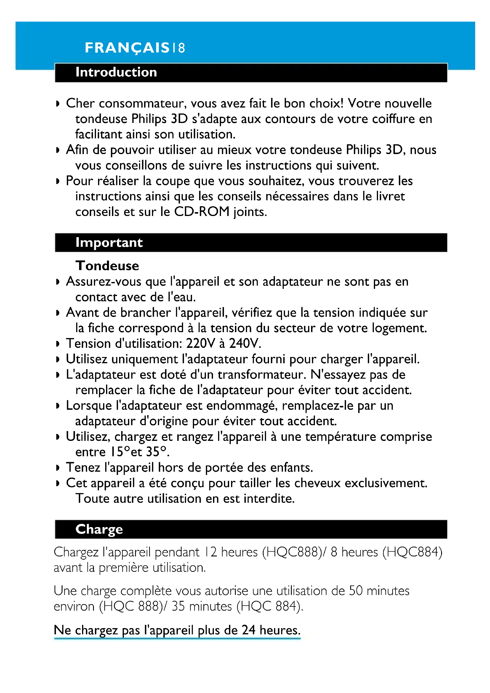 Retrouvez gratuitement la notice de l'appareil HQC888 PHILIPS au format PDF.