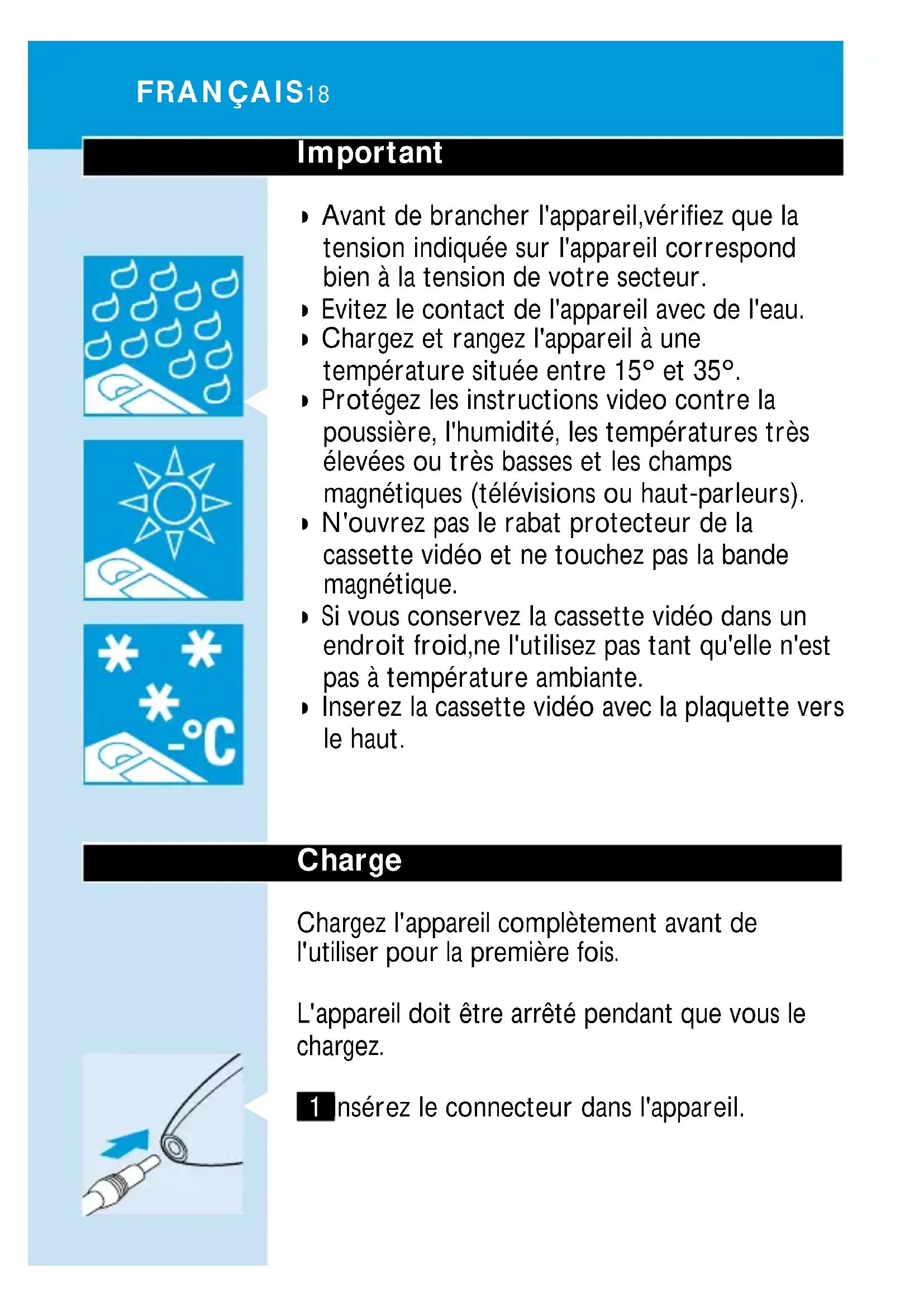 - Chargez et rangez l'appareil à une température située entre 15° et 35°.