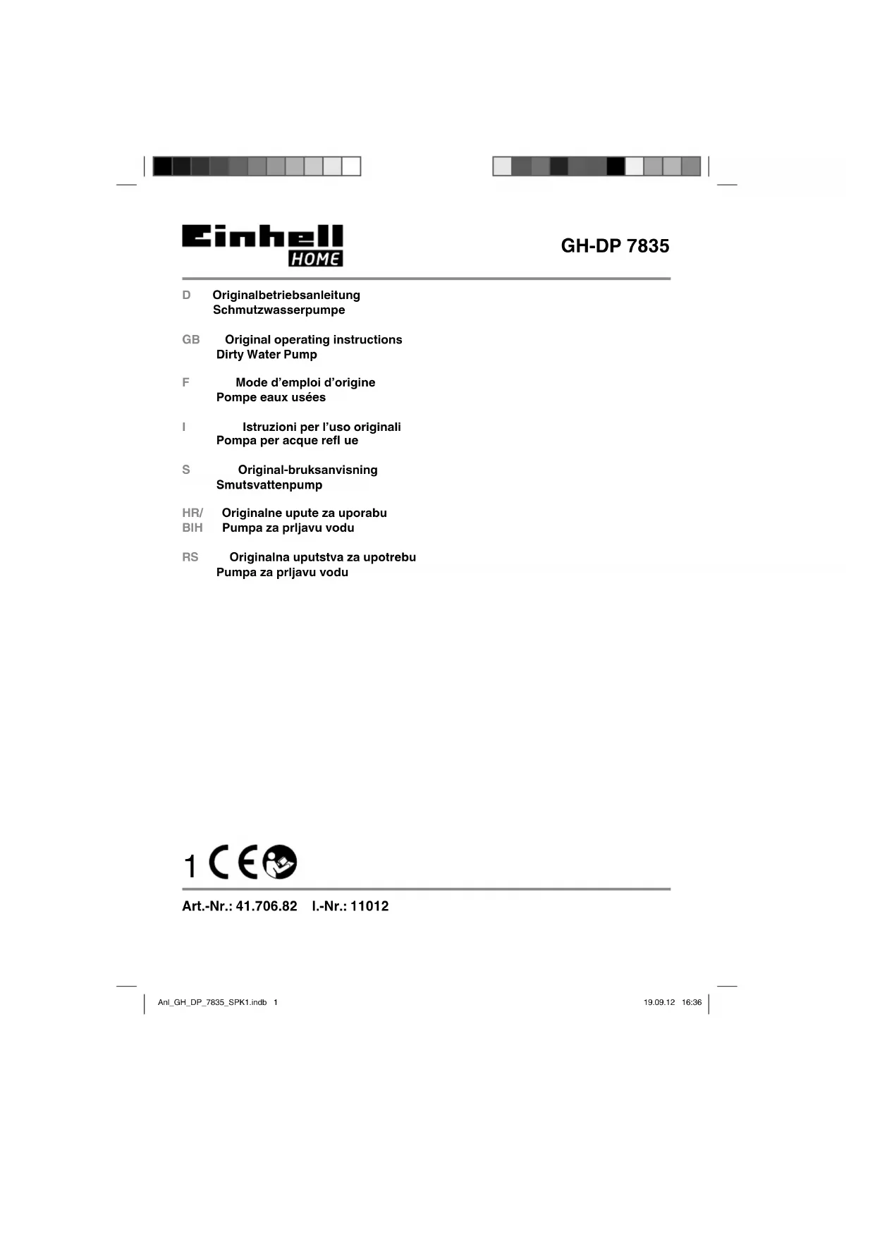 Téléchargez la notice de votre Pompe au format PDF gratuitement ! Retrouvez votre notice GCDP 7835 - EINHELL et reprennez votre appareil électronique en main. Sur cette page sont publiés tous les documents nécessaires à l'utilisation de votre appareil GCDP 7835 de la marque EINHELL.