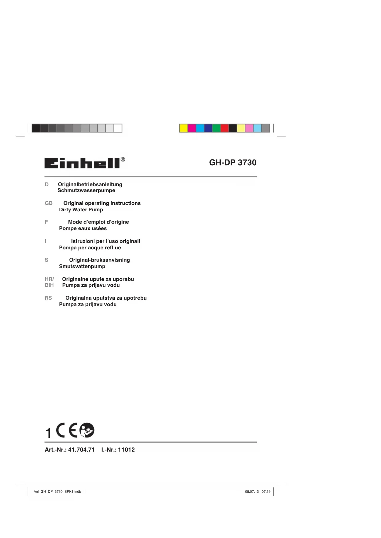 GHDP 3730 - Pompe EINHELL - Notice d'utilisation et mode d'emploi gratuit