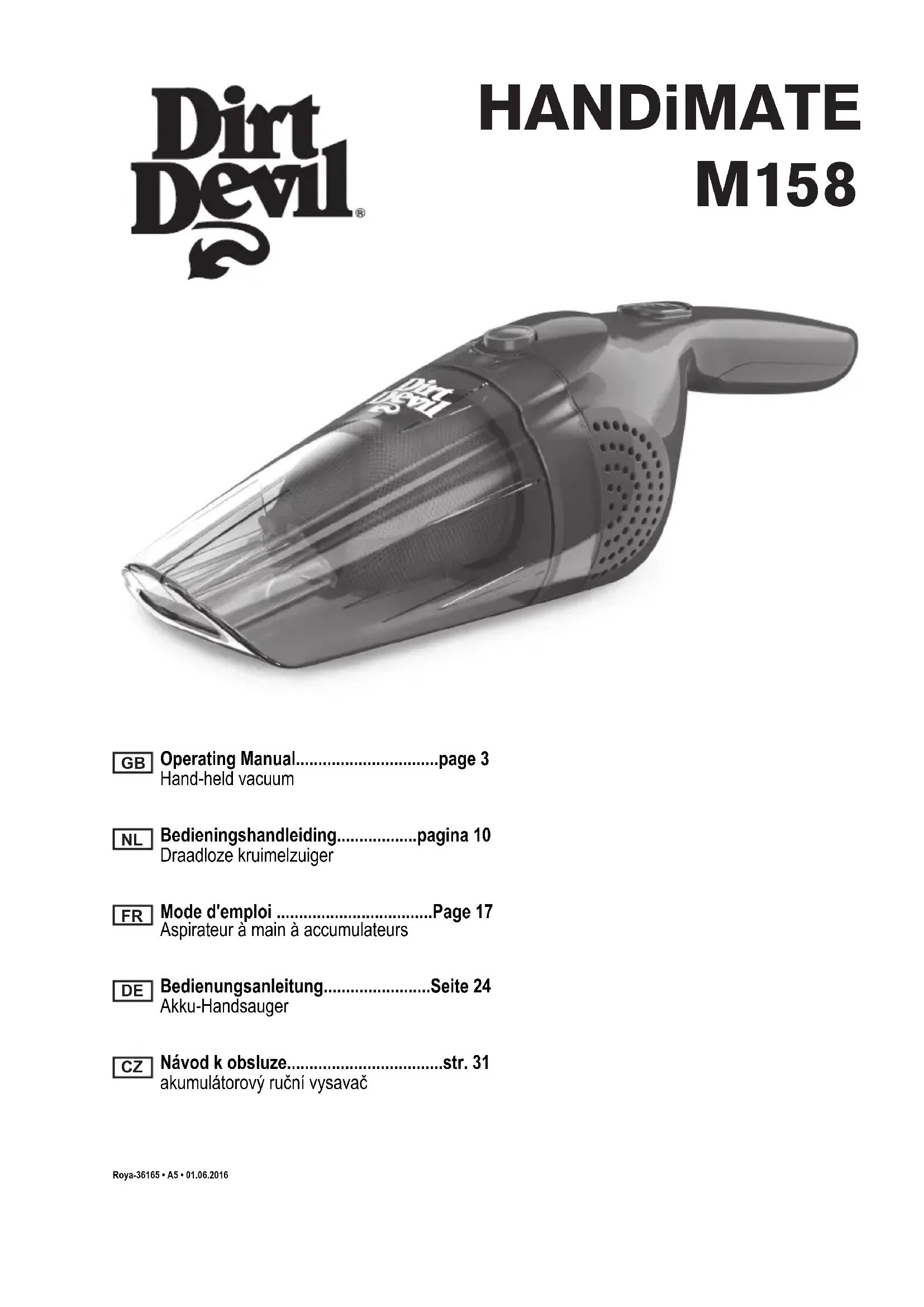 Retrouvez gratuitement la notice de l'appareil M1580 DIRT DEVIL au format PDF.