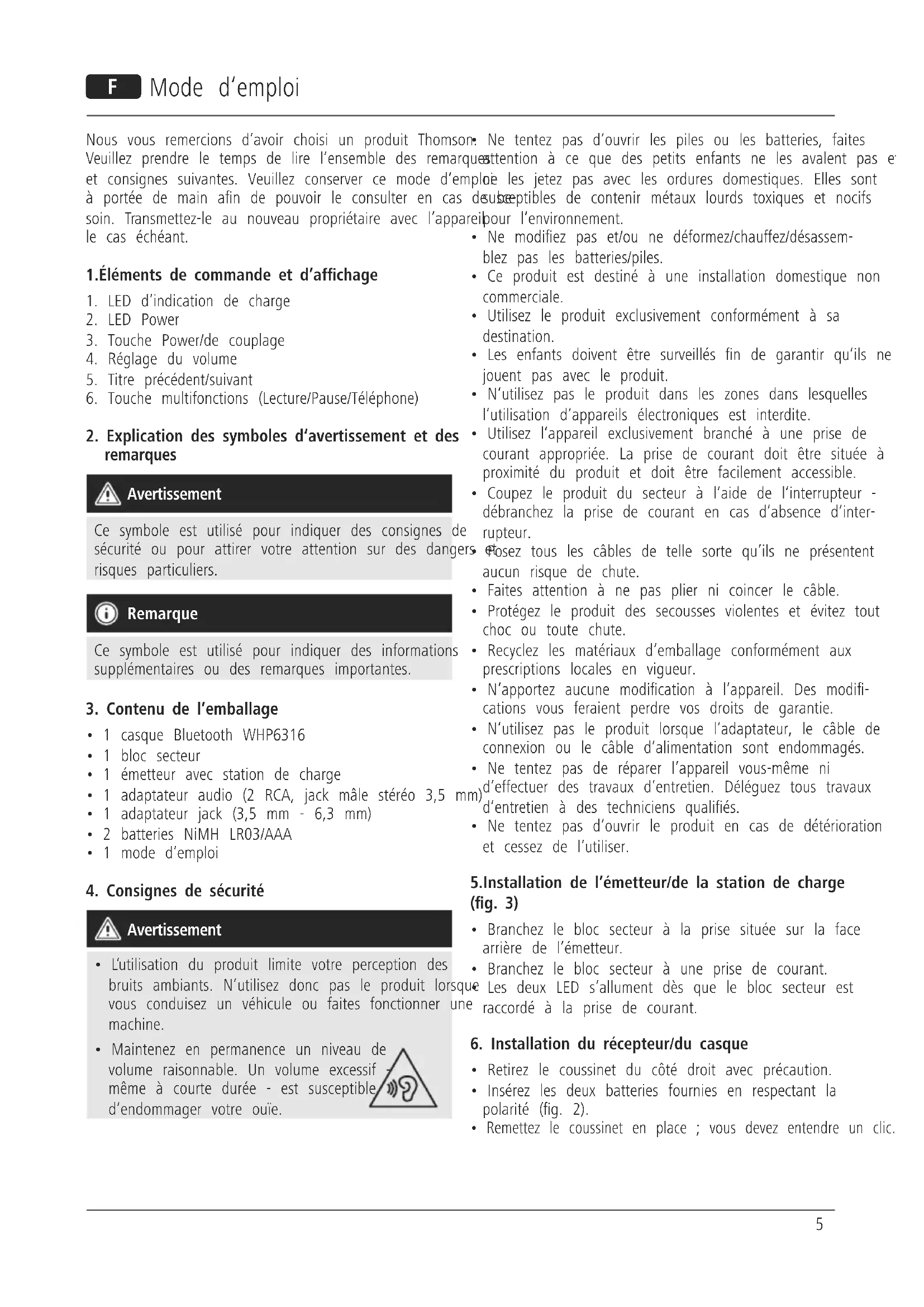 - Ne tentez pas d‘ouvrir le produit en cas de détérioration et cessez de l’utiliser. 5.Installation de l’émetteur/de la station de charge (g. 3)