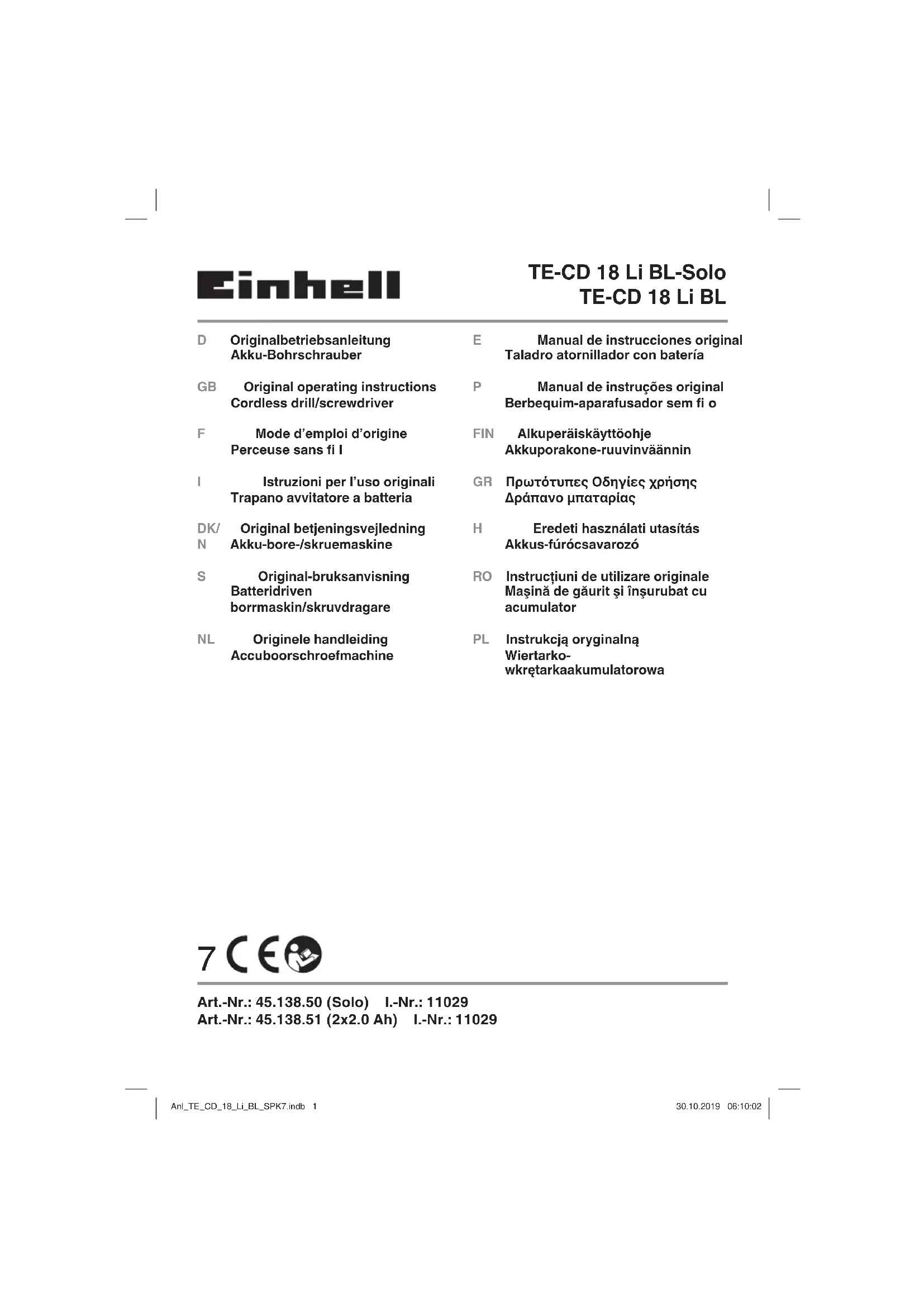 Téléchargez la notice de votre Perceuse au format PDF gratuitement ! Retrouvez votre notice TECD 18 LI BL - EINHELL et reprennez votre appareil électronique en main. Sur cette page sont publiés tous les documents nécessaires à l'utilisation de votre appareil TECD 18 LI BL de la marque EINHELL.