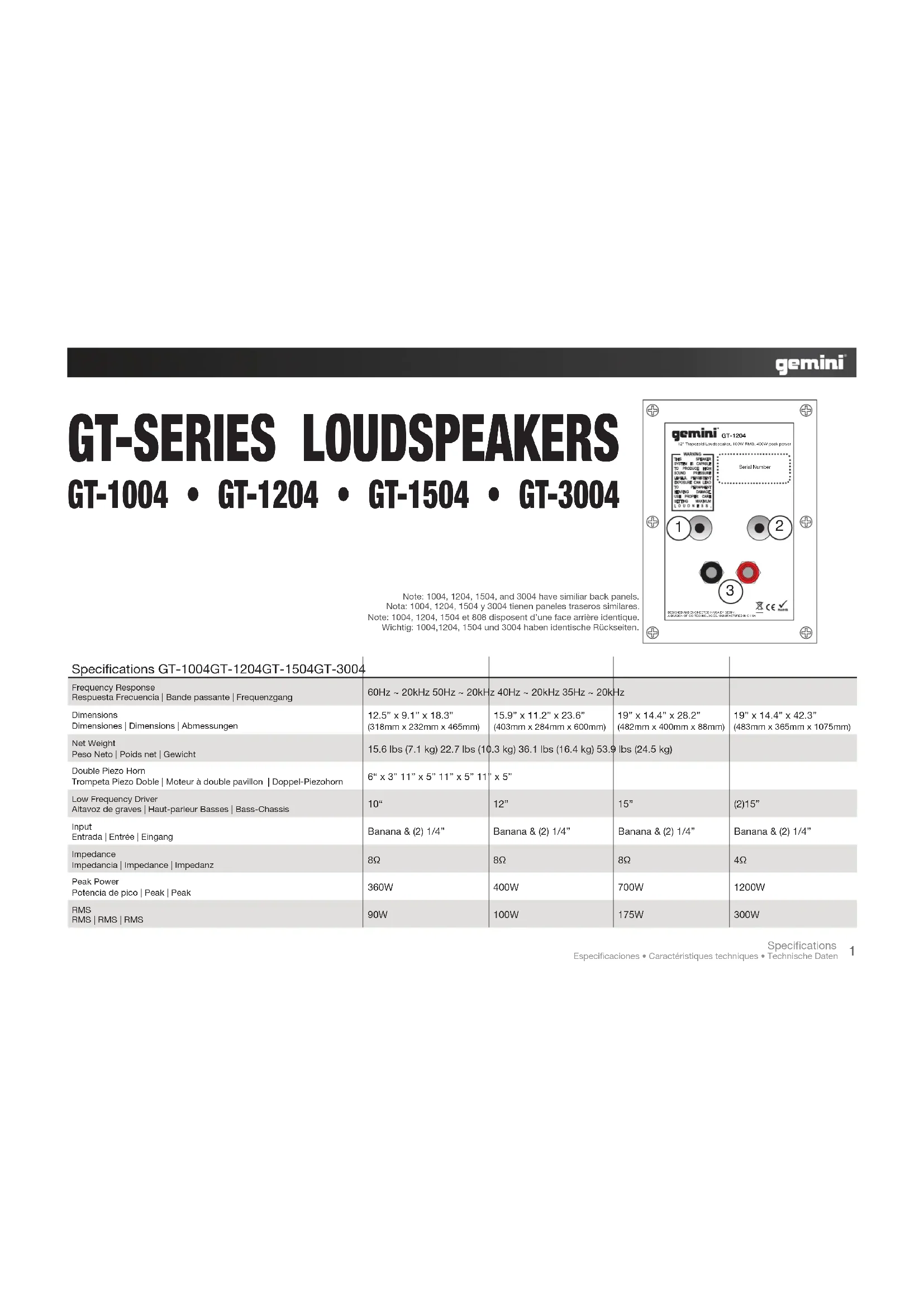 GT1004 - Haut-parleur GEMINI - Notice d'utilisation et mode d'emploi gratuit