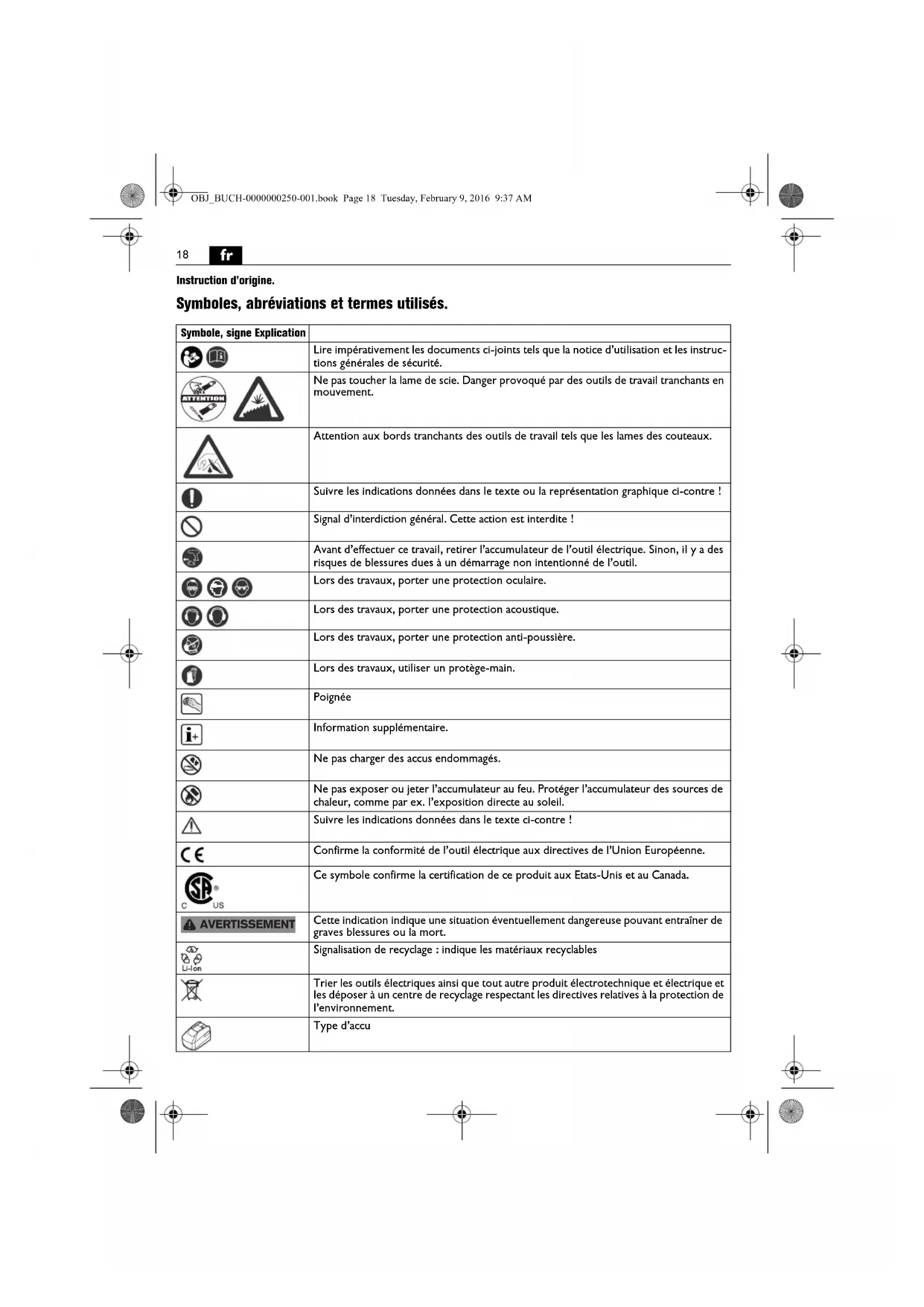 N'utilise que des accumulateurs intacts d'origine FEIN conçus pour votre outil électrique. Lors du travail avec et lors du chargement d'accumulateurs d'un type ne convenant pas à l'outil, d'accumulateurs endommagés, réparés ou modifiés, d'accumulateurs contrefaits ou d'autres fabricants, il y a danger d'incendie et/ou d'explosion.