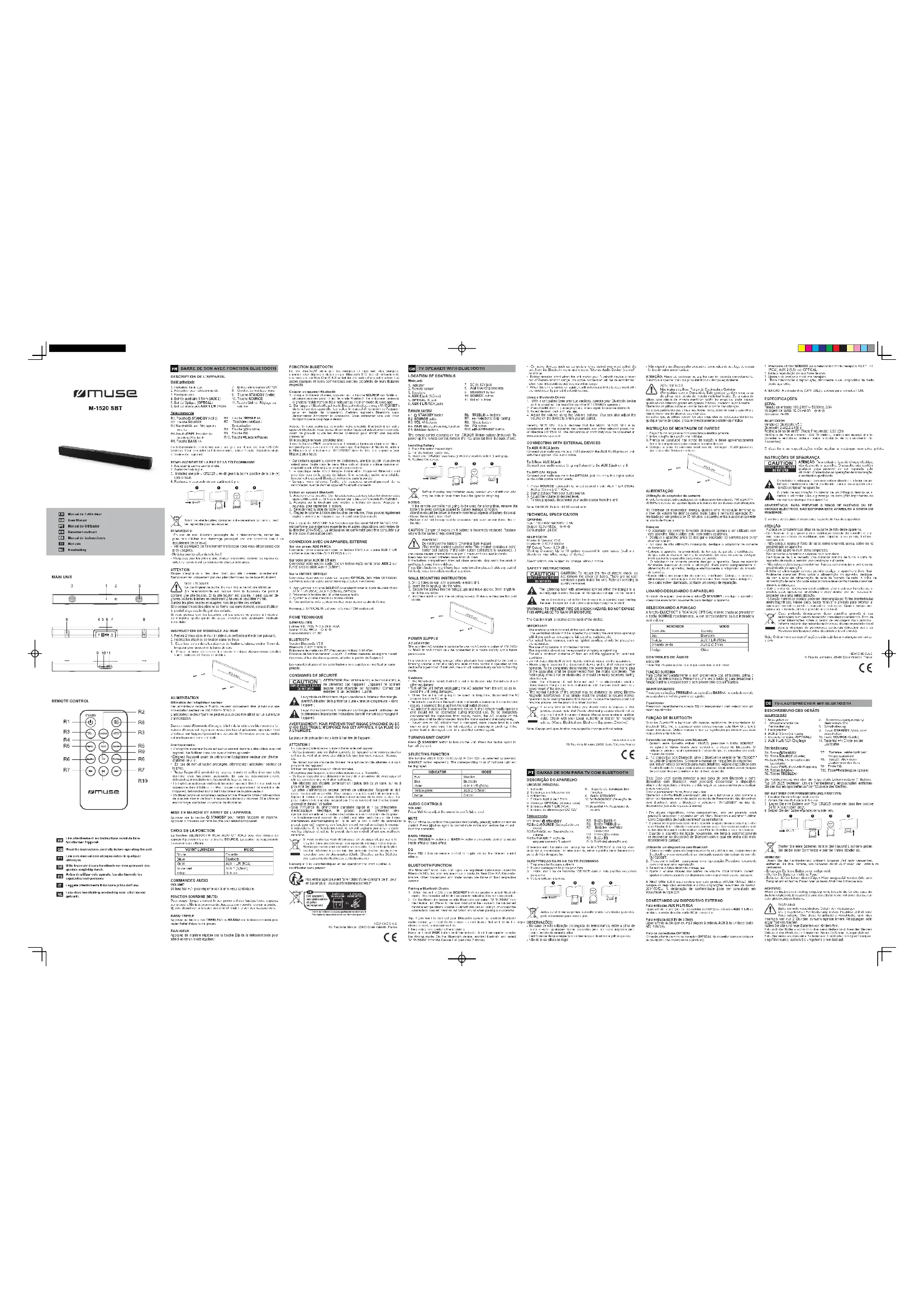 M1520 SBT - Barre de son MUSE - Notice d'utilisation et mode d'emploi gratuit