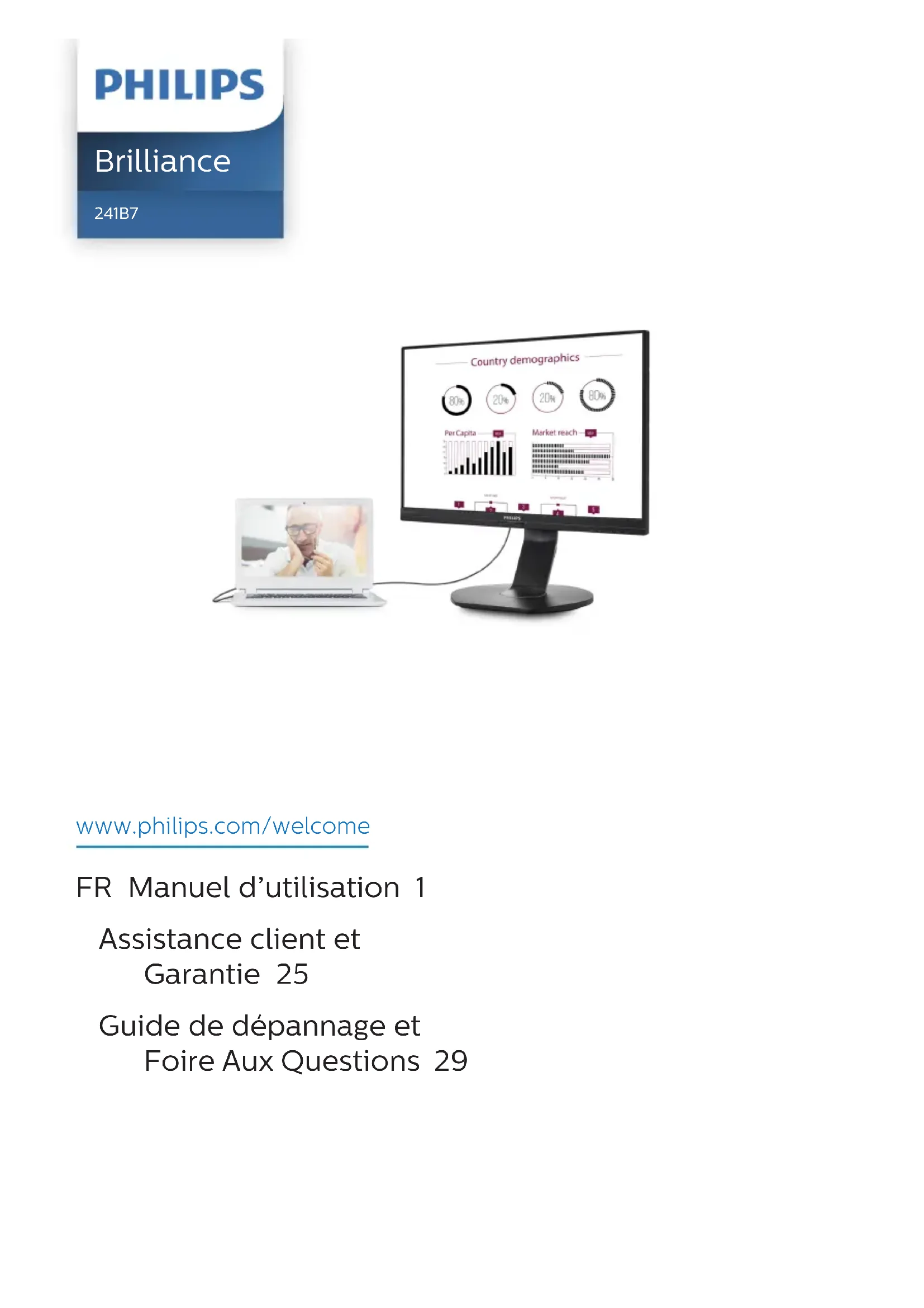 www.philips.com/welcome Br illiance 241B7 FR Manuel d’utilisation 1 Assistance client et Garantie 25 Guide de dépannage et Foire Aux Questions 29Table des matières