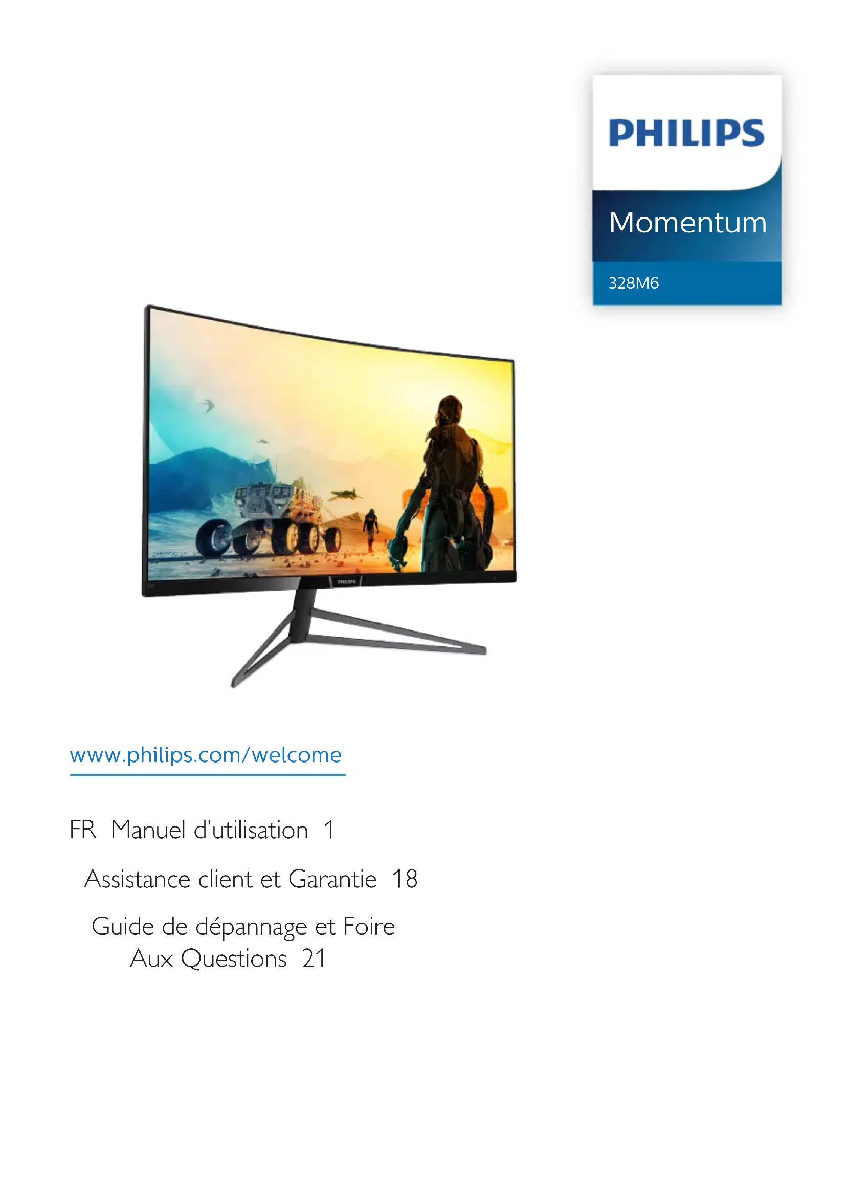 www.philips.com/welcome Momentum 328M6 FR Manuel d’utilisation 1 Assistance client et Garantie 18 Guide de dépannage et Foire Aux Questions 21Table des matières