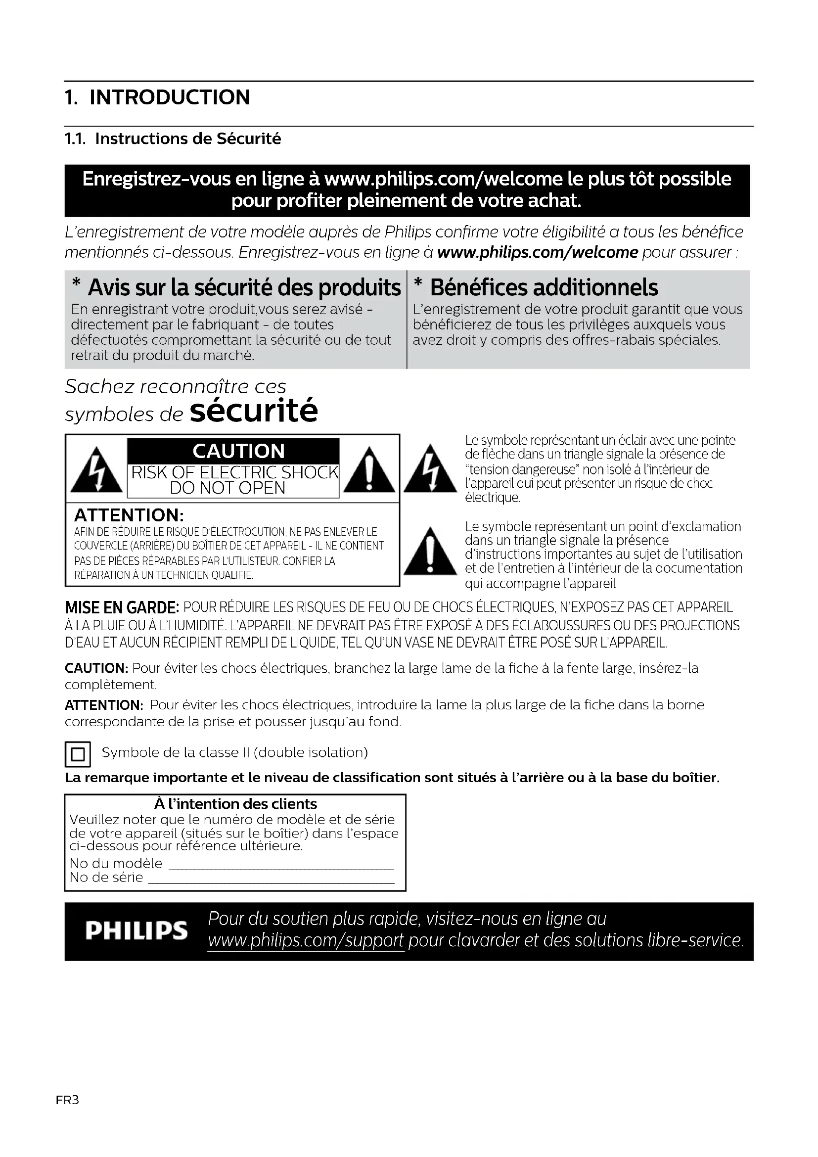 Enregistrez-vous en ligne à www.philips.com/welcome le plus+tot possible pour profiter pleinement de votre achat.