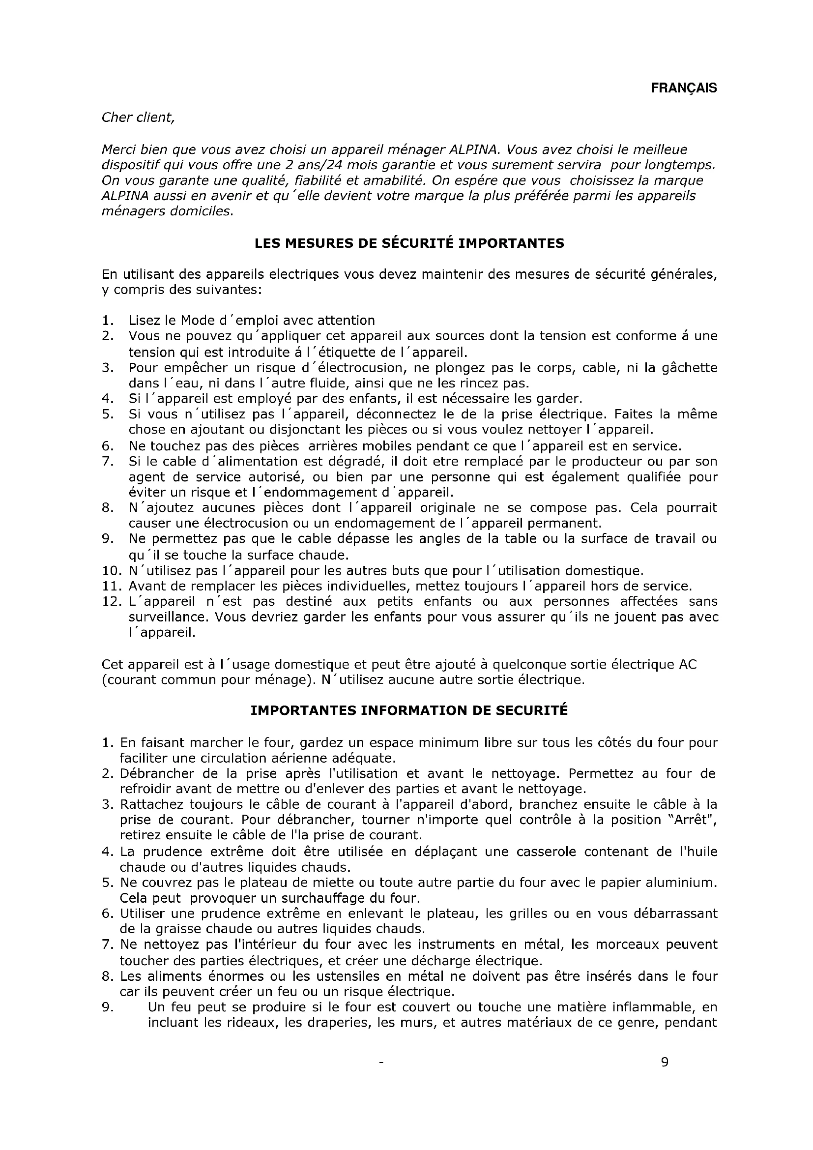 Cher client, Merci bien que vous avez choisi un appareil ménager ALPINA. Vous avez choisi le meilleue dispositif qui vous offre une 2 ans/24 mois garantie et vous surement servira pour longtemps. On vous garante une qualité, fiabilité et amabilité. On espére que vous choisissez la marque ALPINA aussi en avenir et qu´elle devient votre marque la plus préférée parmi les appareils ménagers domiciles.