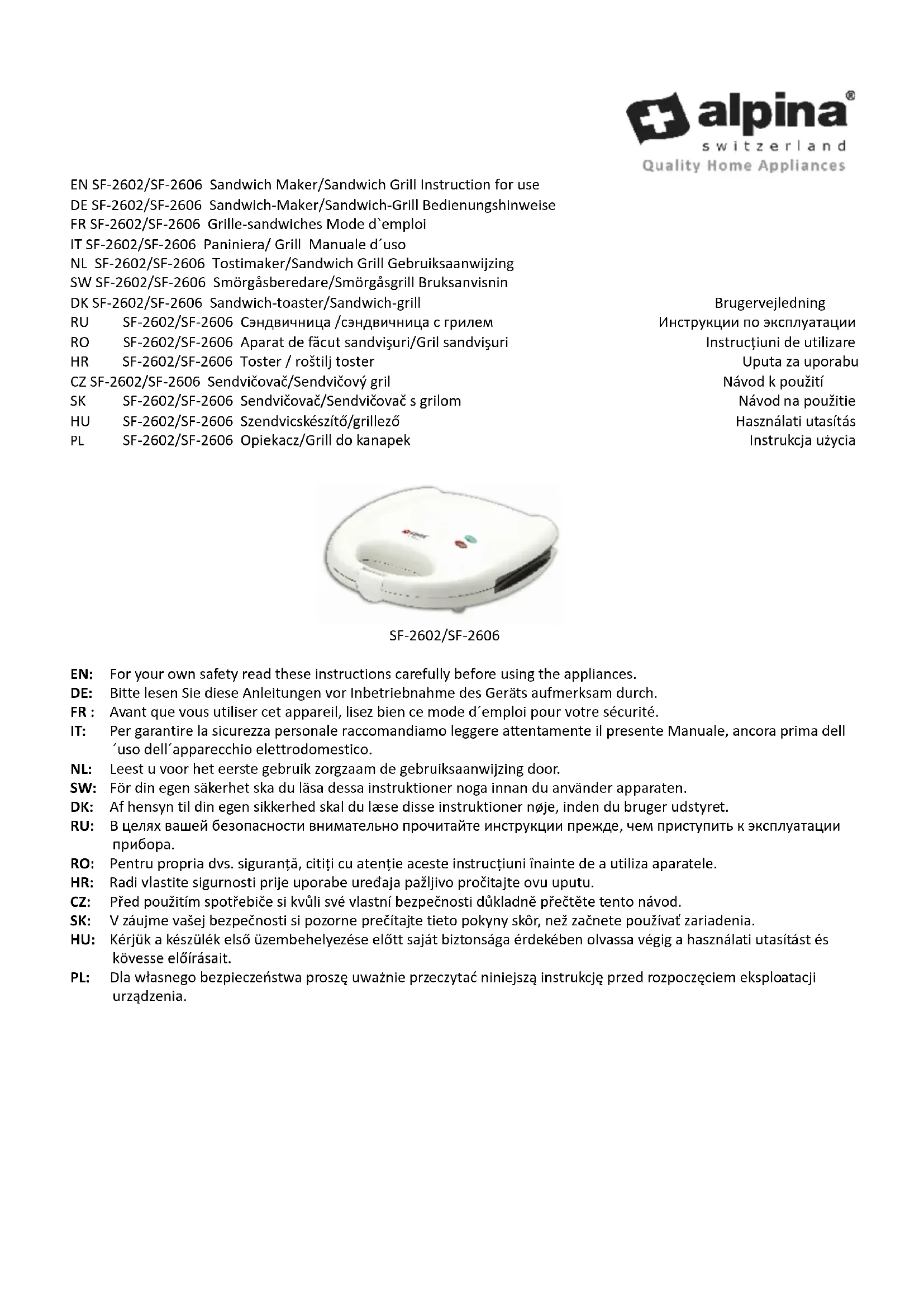 Retrouvez gratuitement la notice de l'appareil SF2602 ALPINA au format PDF.