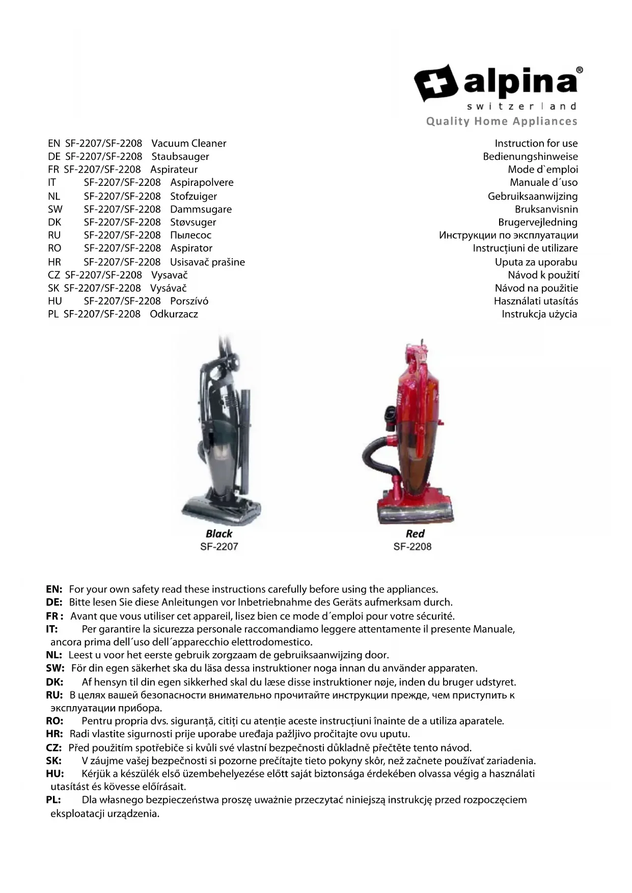 Retrouvez gratuitement la notice de l'appareil SF2207 ALPINA au format PDF.