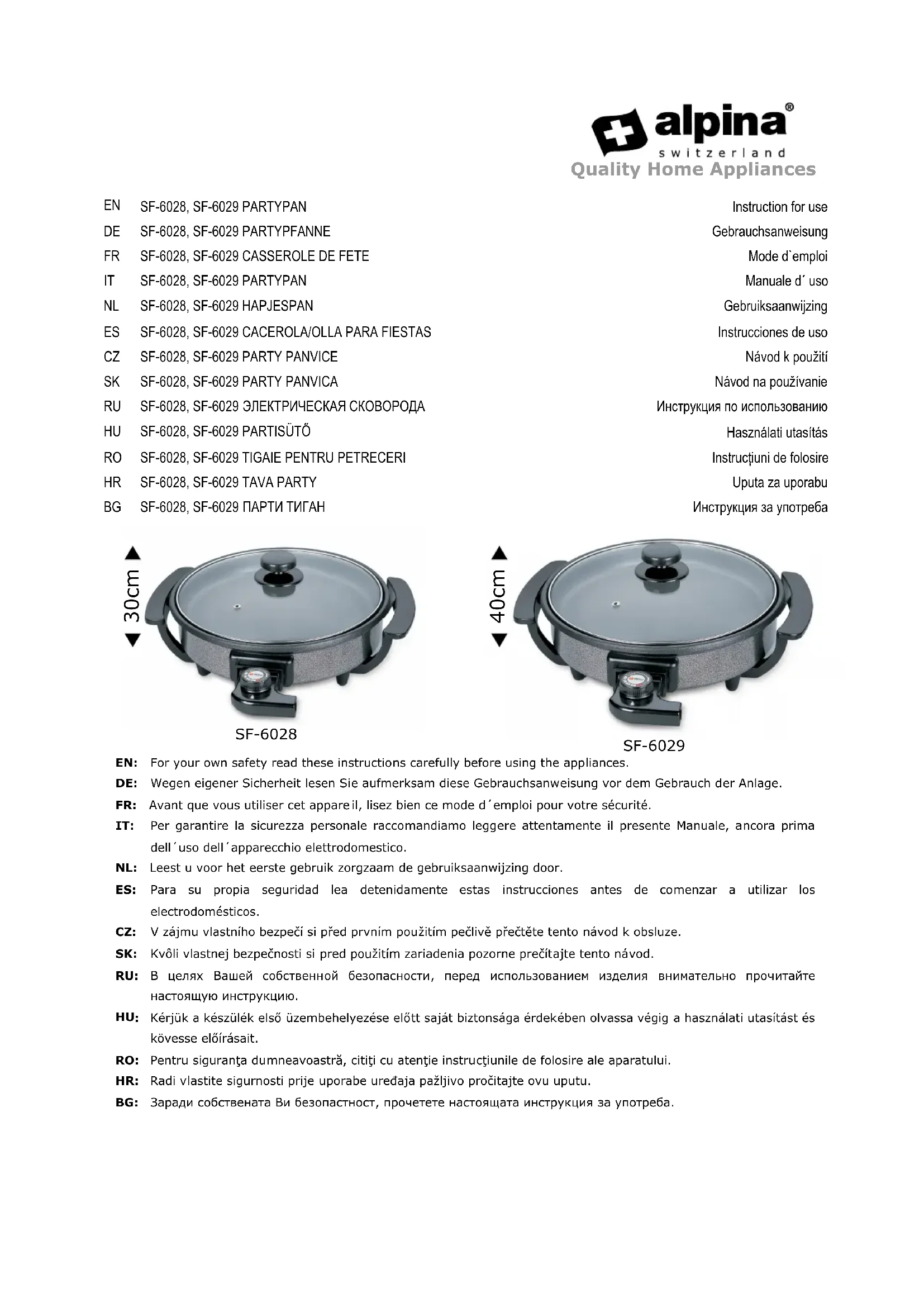 Retrouvez gratuitement la notice de l'appareil SF6029 ALPINA au format PDF.