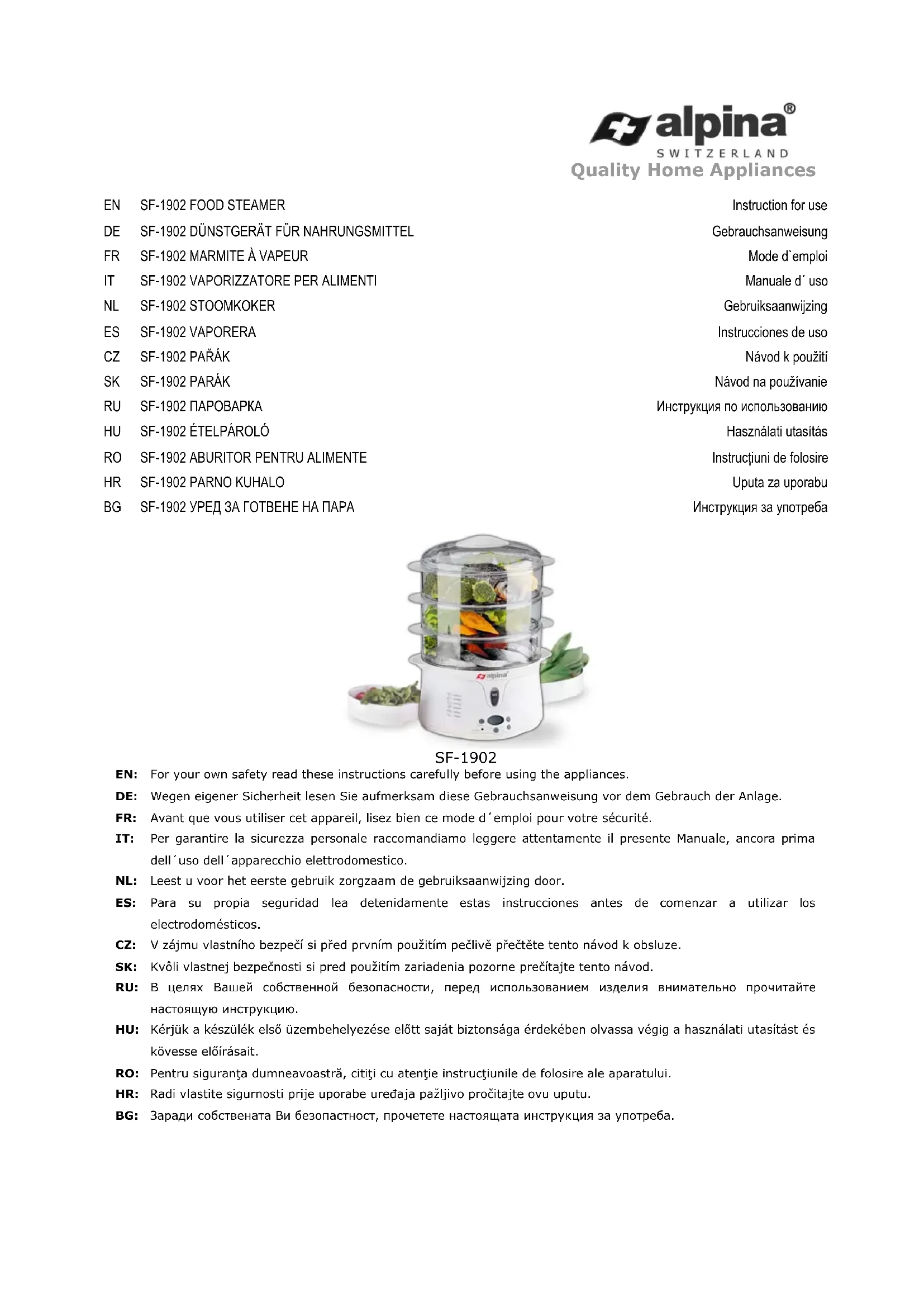Retrouvez gratuitement la notice de l'appareil SF1902 ALPINA au format PDF.