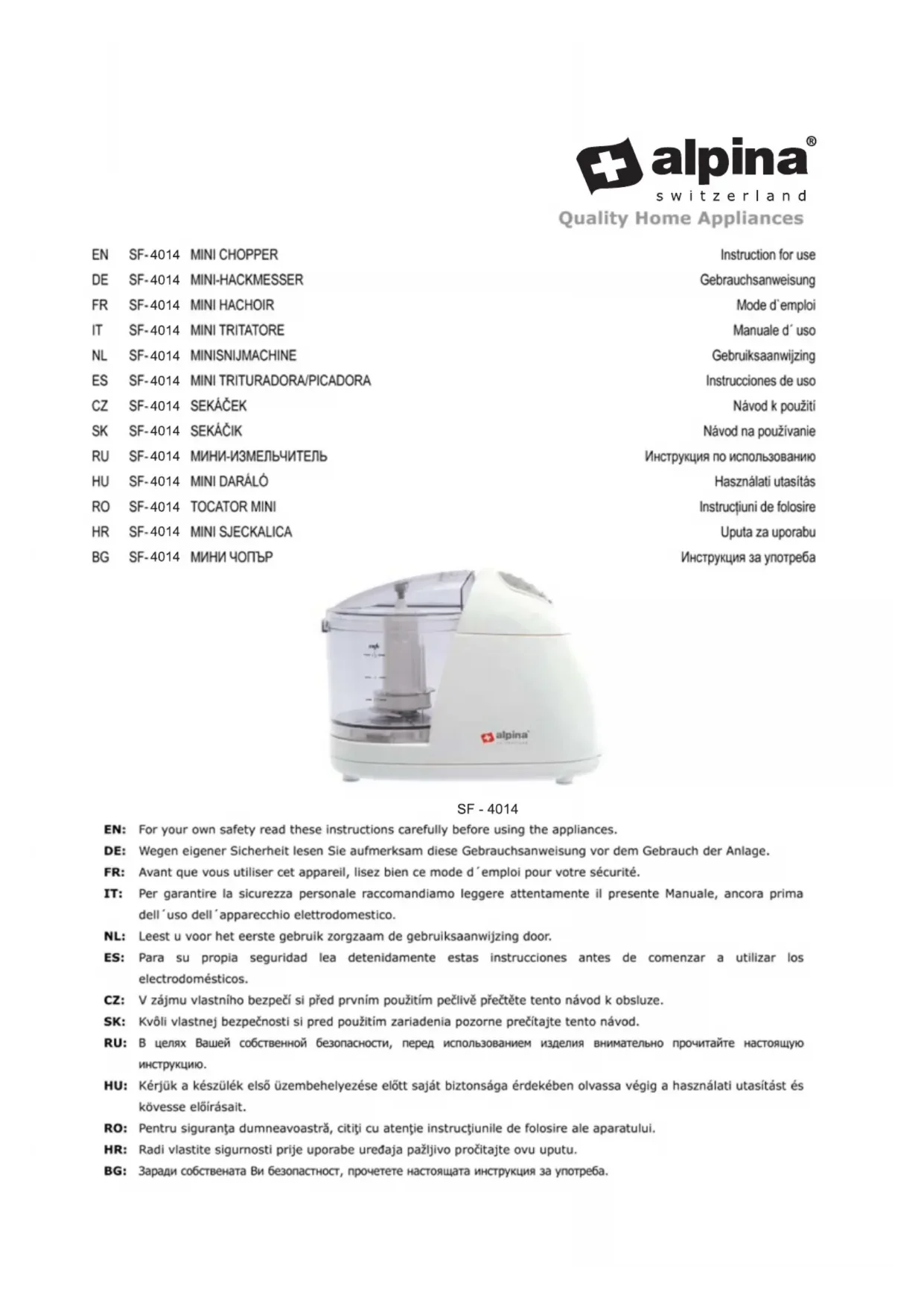 Retrouvez gratuitement la notice de l'appareil SF4014 ALPINA au format PDF.