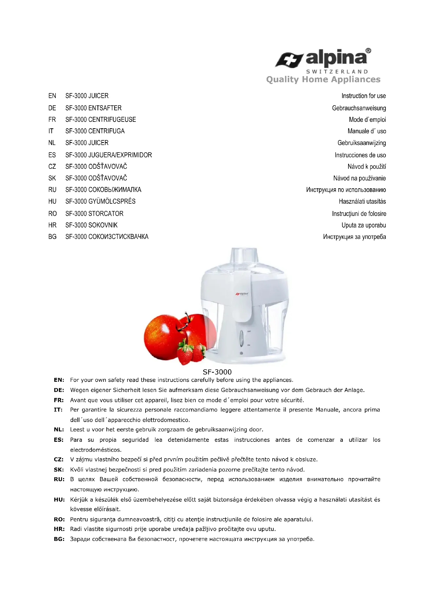 SF3000 - Extracteur de jus ALPINA - Notice d'utilisation et mode d'emploi gratuit