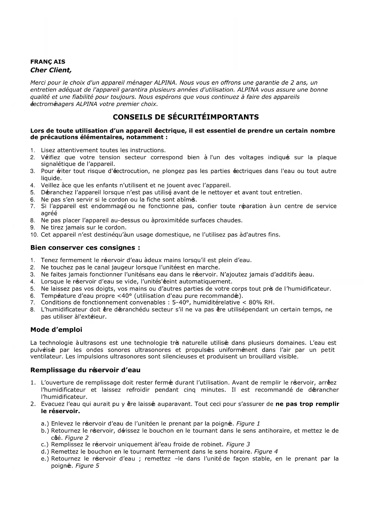 SF5062 - Humidificateur ALPINA - Notice d'utilisation et mode d'emploi gratuit