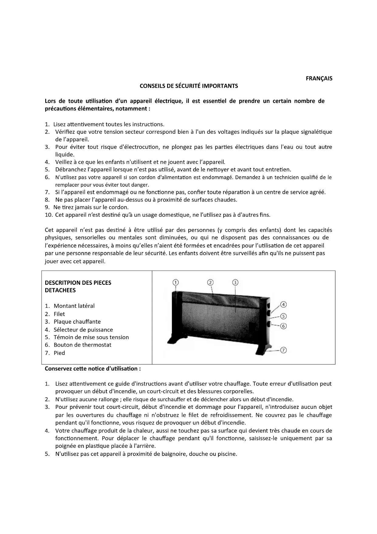 - Lisez attentivement ce guide d'instructions avant d'utiliser votre chauffage. Toute erreur d'utilisation peut provoquer un début d'incendie, un court-circuit et des blessures corporelles.