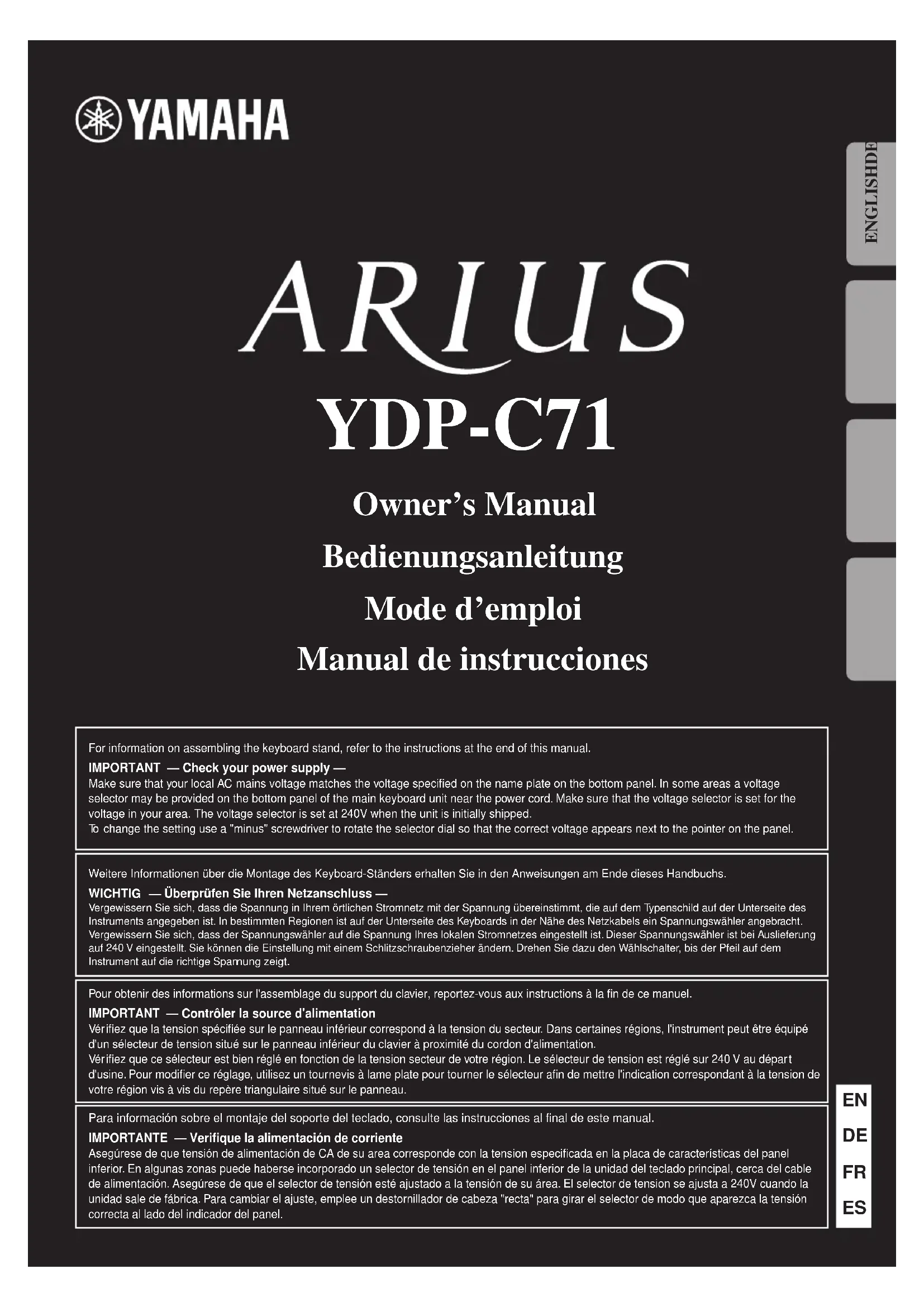 Retrouvez gratuitement la notice de l'appareil Arius YDPC71PE YAMAHA au format PDF.