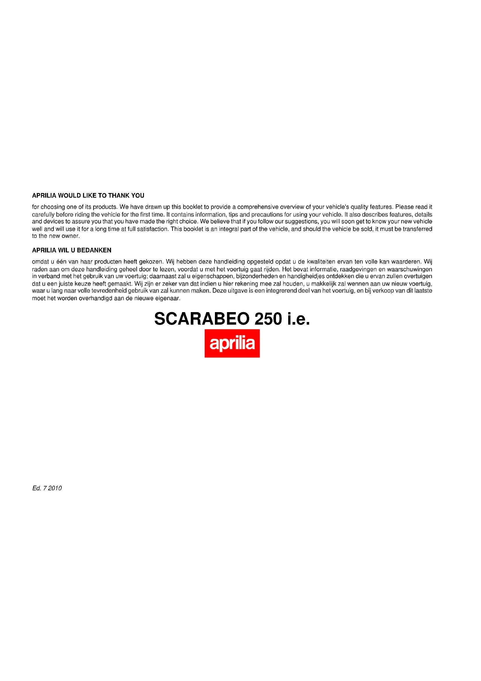 MODE D'EMPLOI Scarabeo 250 i.e. (2010) APRILIA