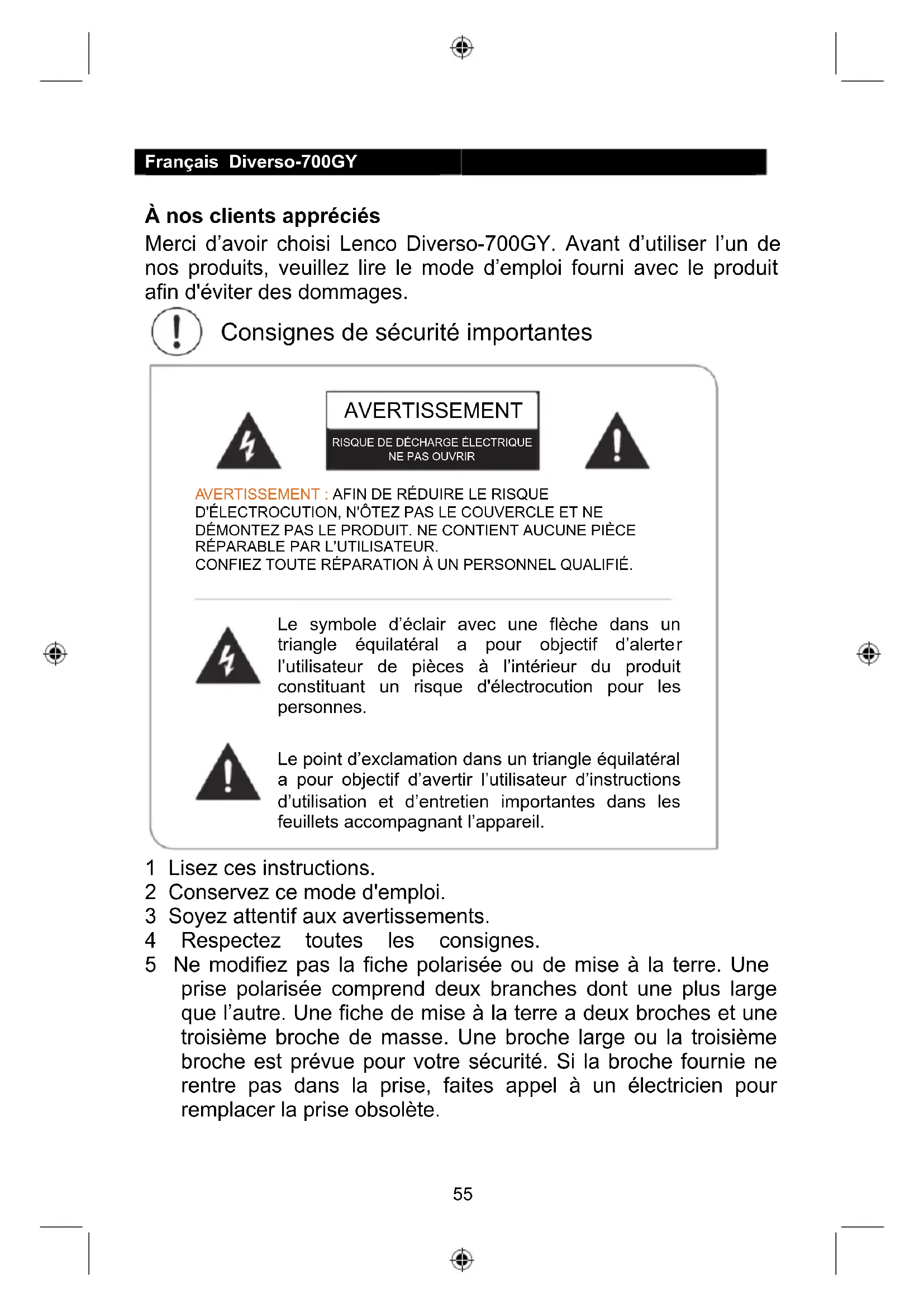 Retrouvez gratuitement la notice de l'appareil Diverso700GY LENCO au format PDF.
