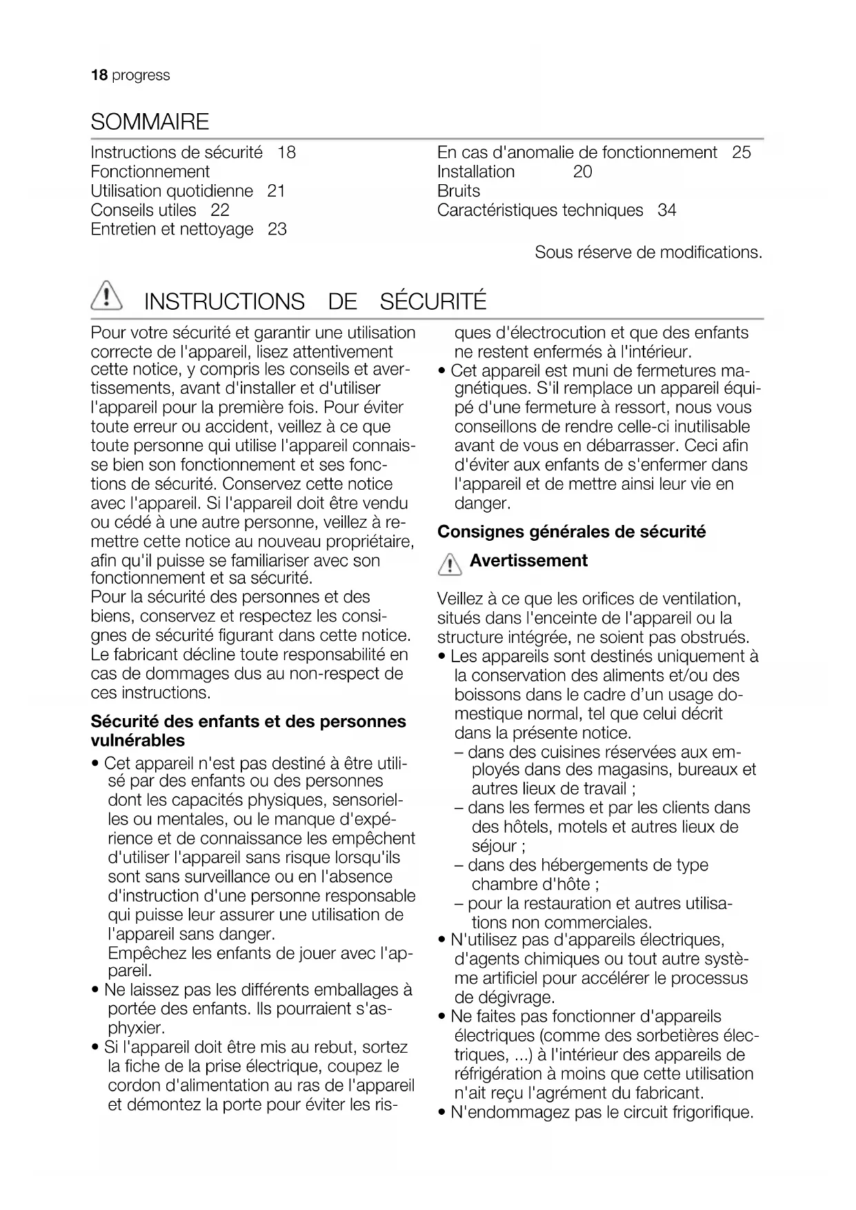 PKG1843 - Réfrigérateur PROGRESS - Notice d'utilisation et mode d'emploi gratuit