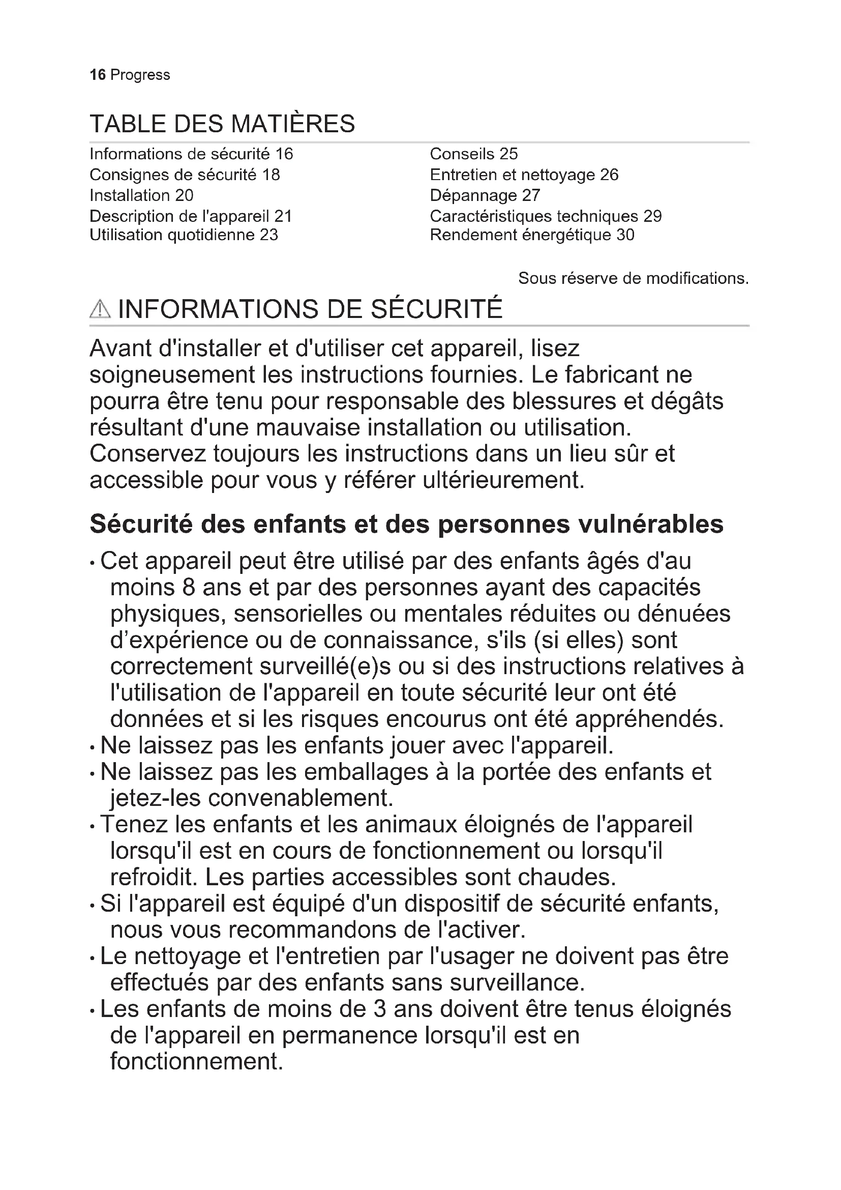 PAS8060E - Cuisinière PROGRESS - Notice d'utilisation et mode d'emploi gratuit