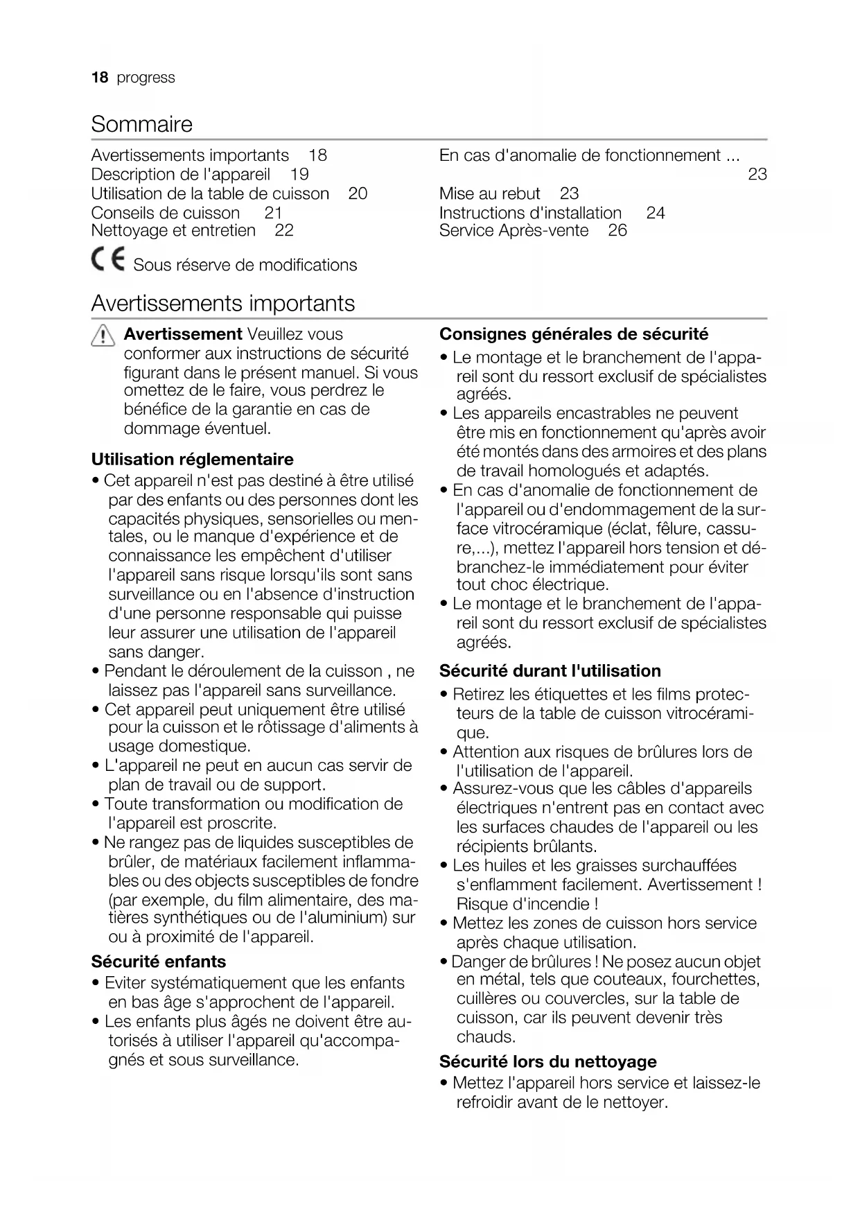 Mise au rebut 23 Instructions d'installation 24 Service Après-vente 26 Sous réserve de modifications Avertissements importants Avertissement Veuillez vous conformer aux instructions de sécurité figurant dans le présent manuel. Si vous omettez de le faire, vous perdrez le bénéfice de la garantie en cas de dommage éventuel. Utilisation réglementaire