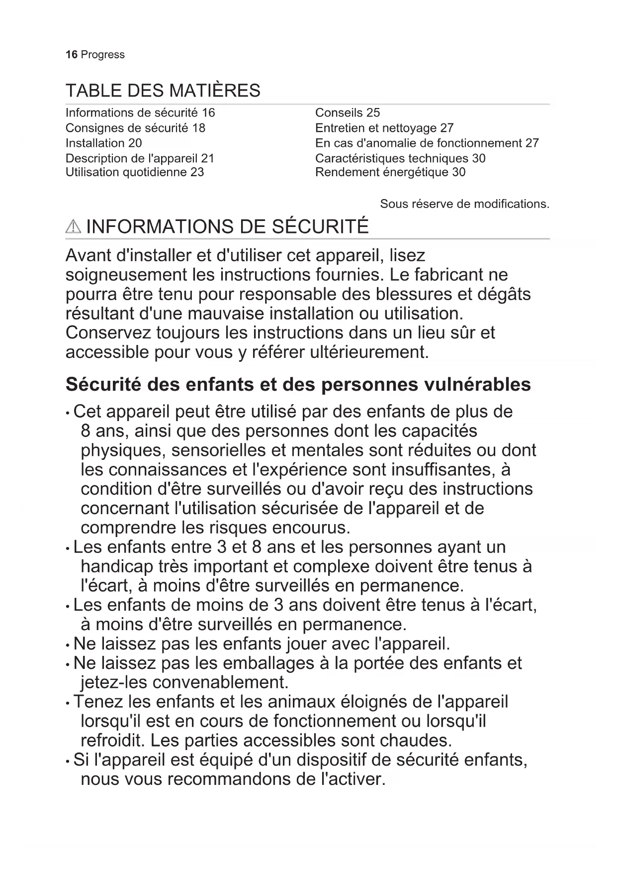 - Si l'appareil est équipé d'un dispositif de sécurité enfants, nous vous recommandons de l'activer.
