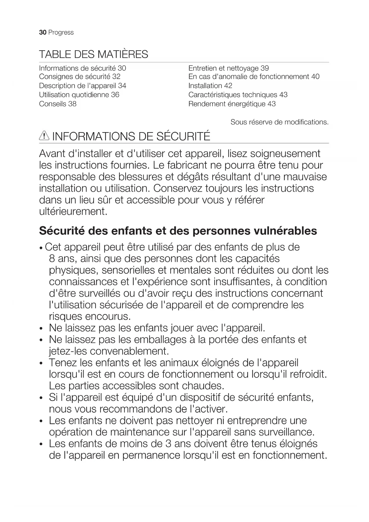 Informations de sécurité 30