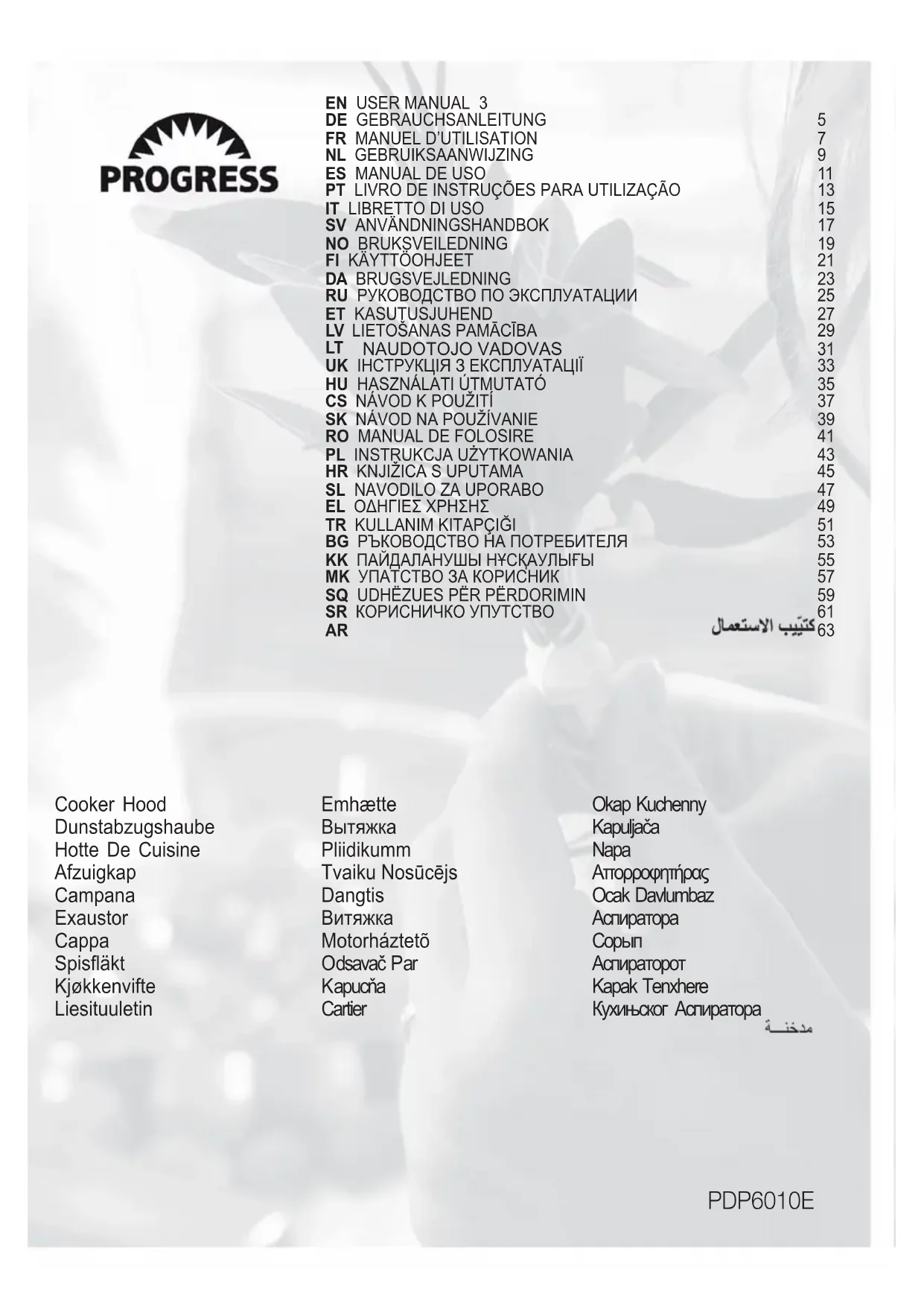 PDP6010E - Hotte PROGRESS - Notice d'utilisation et mode d'emploi gratuit