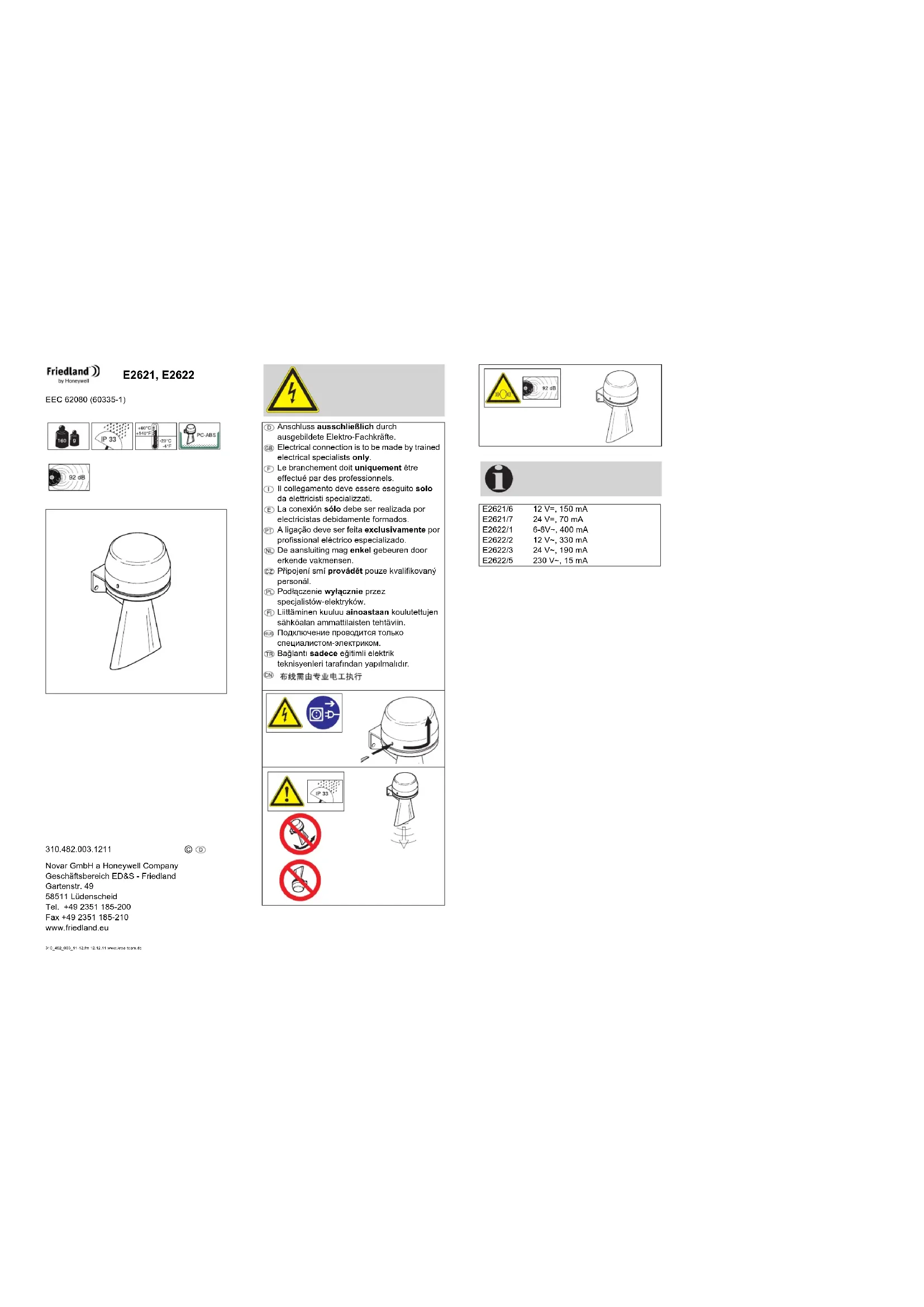 Retrouvez gratuitement la notice de l'appareil E2621 FRIEDLAND au format PDF.