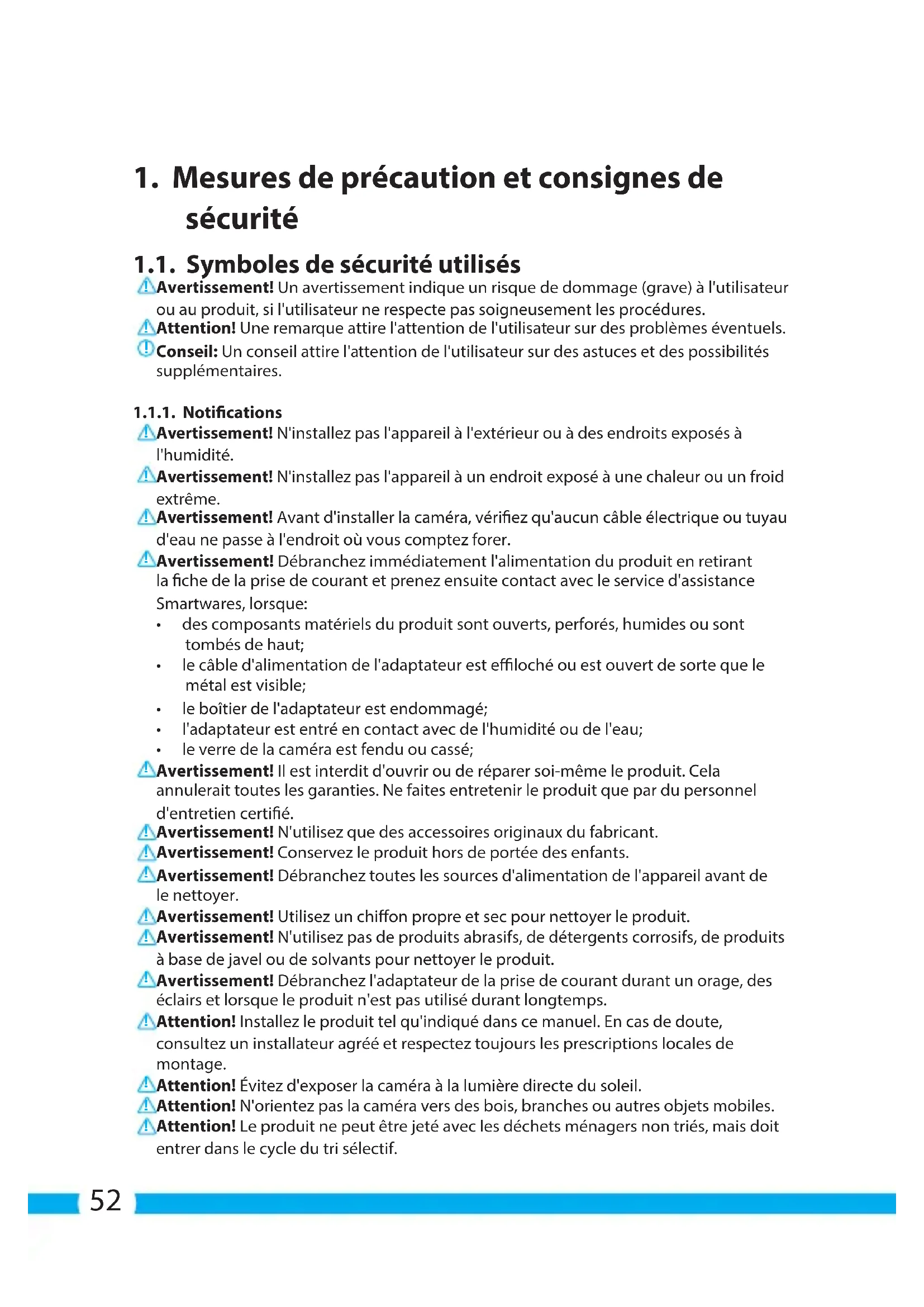 Avertissement! Débranchez immédiatement l'alimentation du produit en retirant la che de la prise de courant et prenez ensuite contact avec le service d'assistance Smartwares, lorsque:
