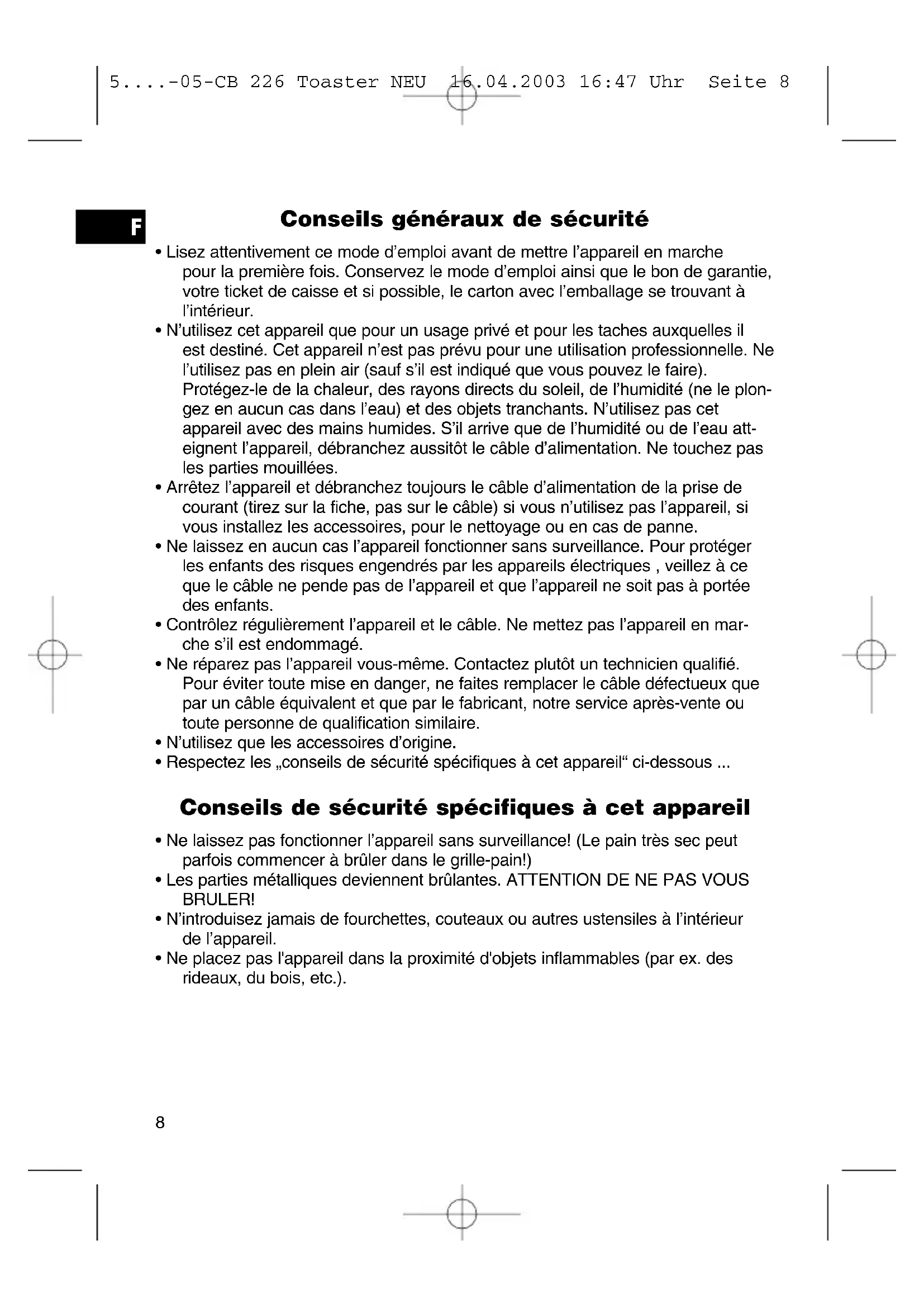 5....-05-CB 226 Toaster NEU 16.04.2003 16:47 Uhr Seite 7Conseils généraux de sécurité
