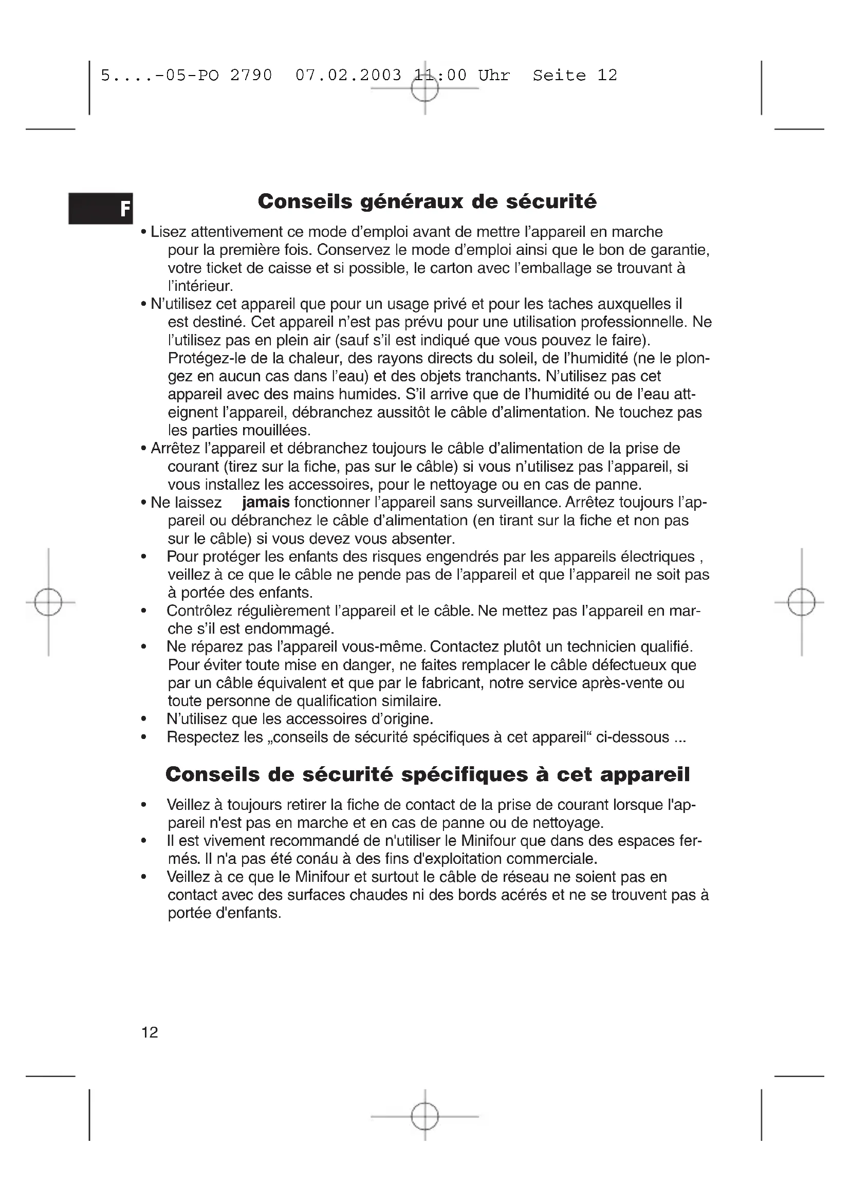 - Respectez les „conseils de sécurité spécifiques à cet appareil“ ci-dessous ... Conseils de sécurité spécifiques à cet appareil