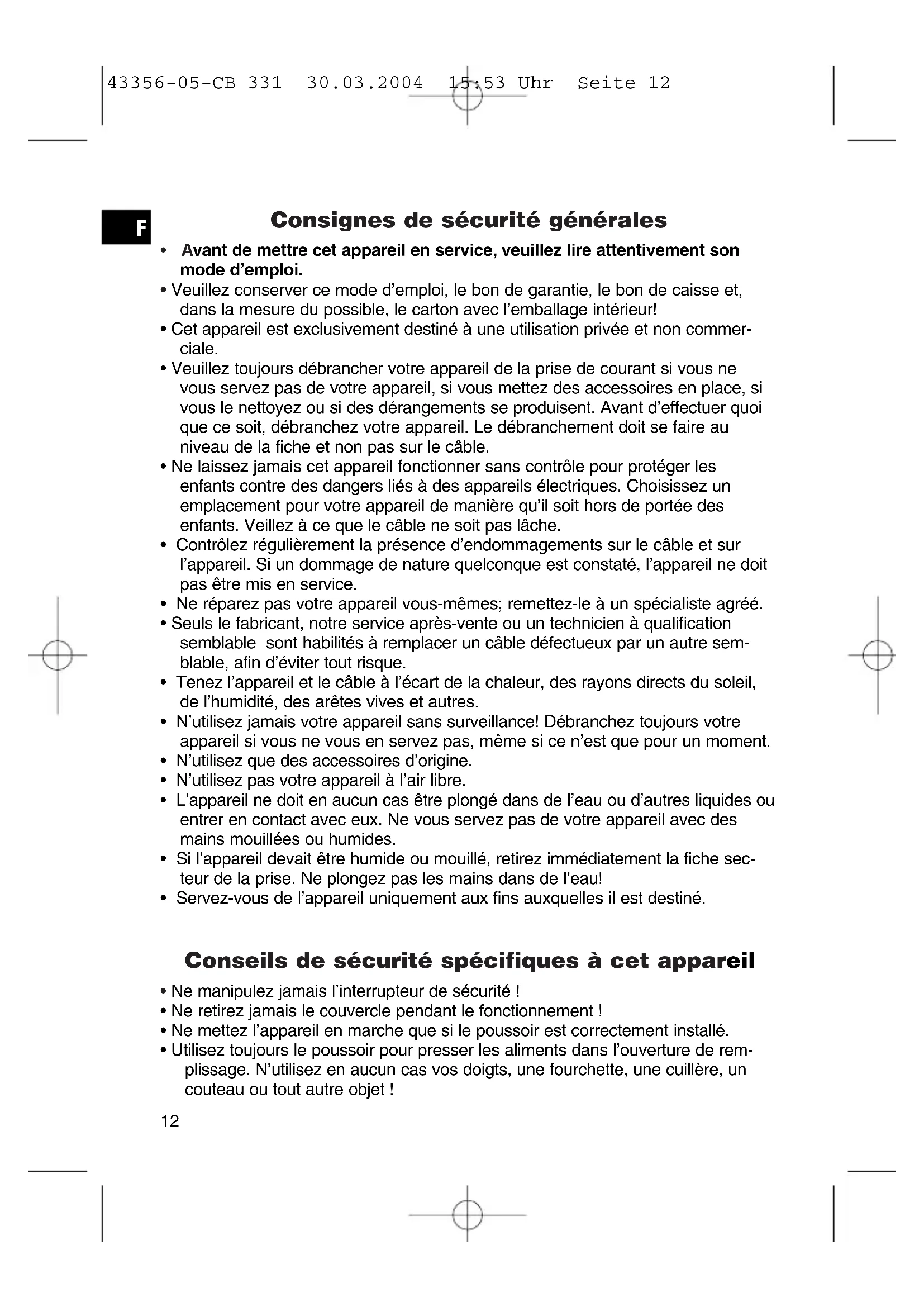 43356-05-CB 331 30.03.2004 15:53 Uhr Seite 11Consignes de sécurité générales