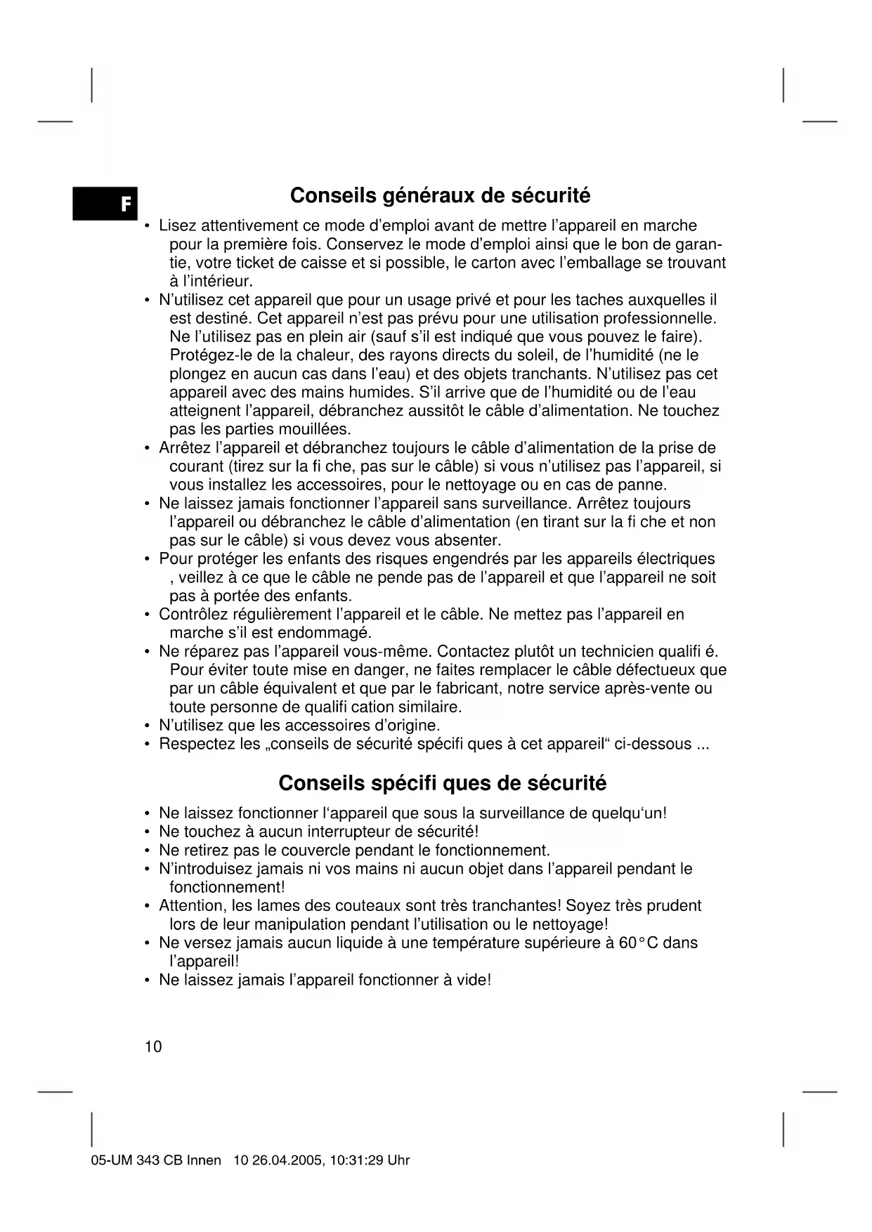- Ne laissez jamais l’appareil fonctionner à vide! 05-UM 343 CB Innen 10 26.04.2005, 10:31:29 UhrF