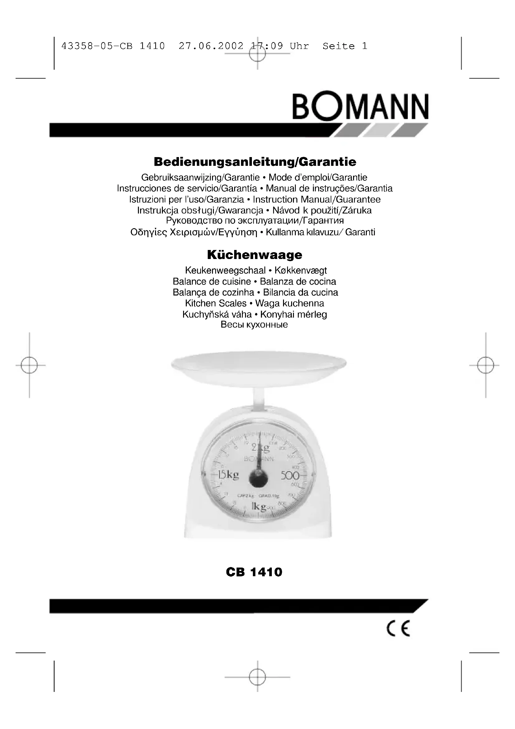 CB 1410 - Balances de cuisine BOMANN - Notice d'utilisation et mode d'emploi gratuit