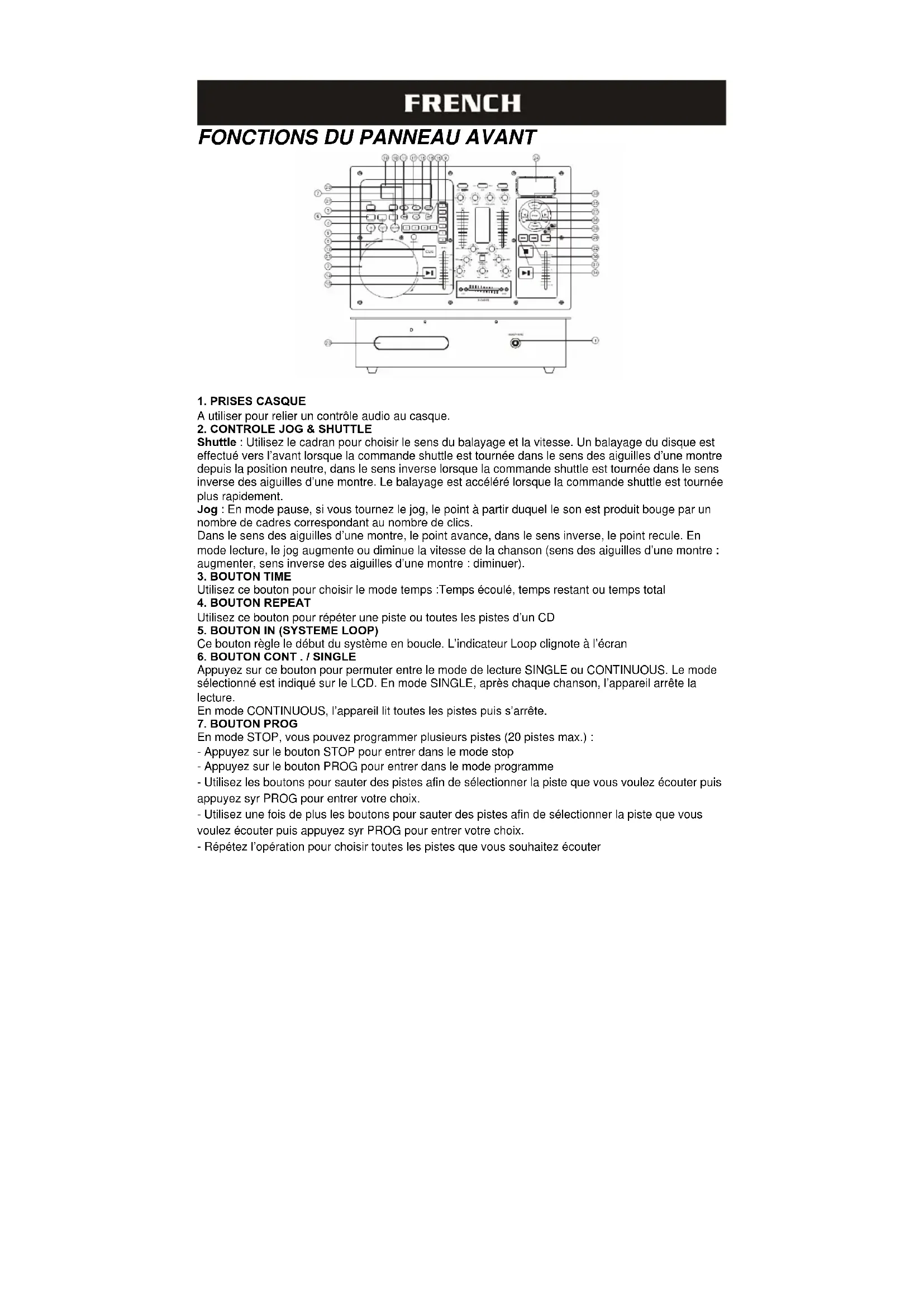 Appuyez pour charger ou éjecter le disque. A chaque fois que vous appuyez cela ouvre ou ferme le plateau du disque. NOTE: le plateau du disque ne s’ouvrira pas tant que vous n’avez pas d’abord appuyé sur le bouton stop ou pause.