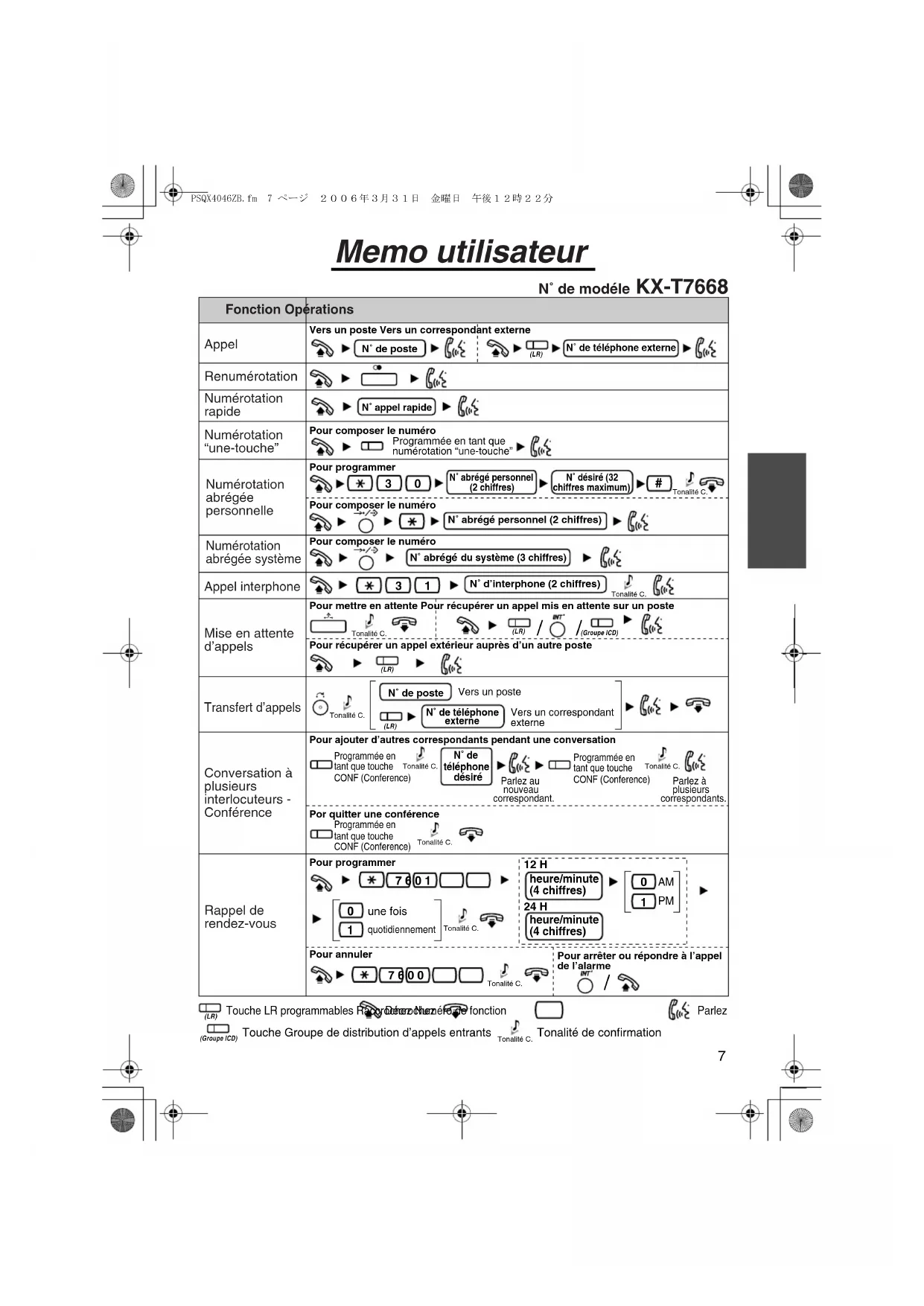 Retrouvez gratuitement la notice de l'appareil KXT7668 PANASONIC au format PDF.