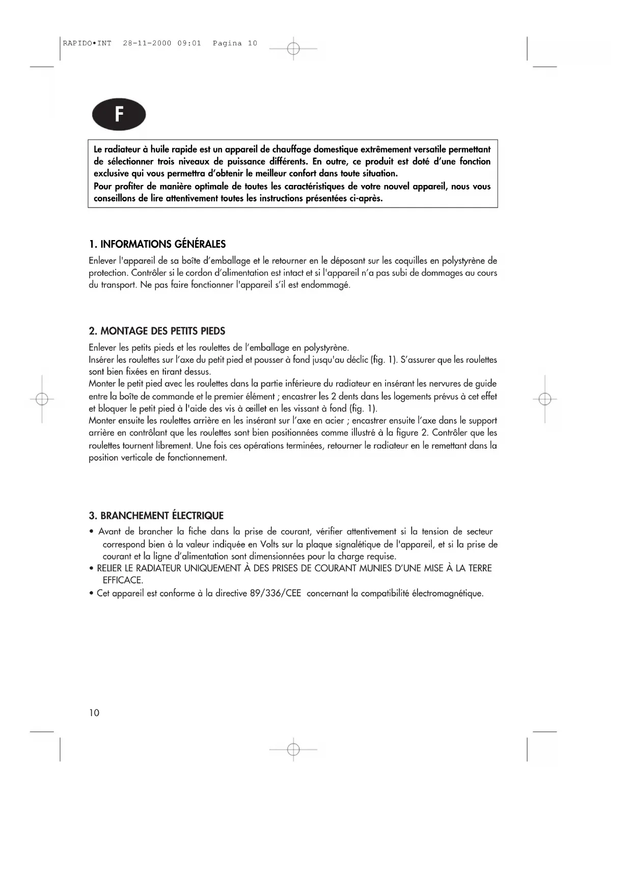 - Cet appareil est conforme à la directive 89/336/CEE concernant la compatibilité électromagnétique. RAPIDO•INT 28-11-2000 09:01 Pagina 1011