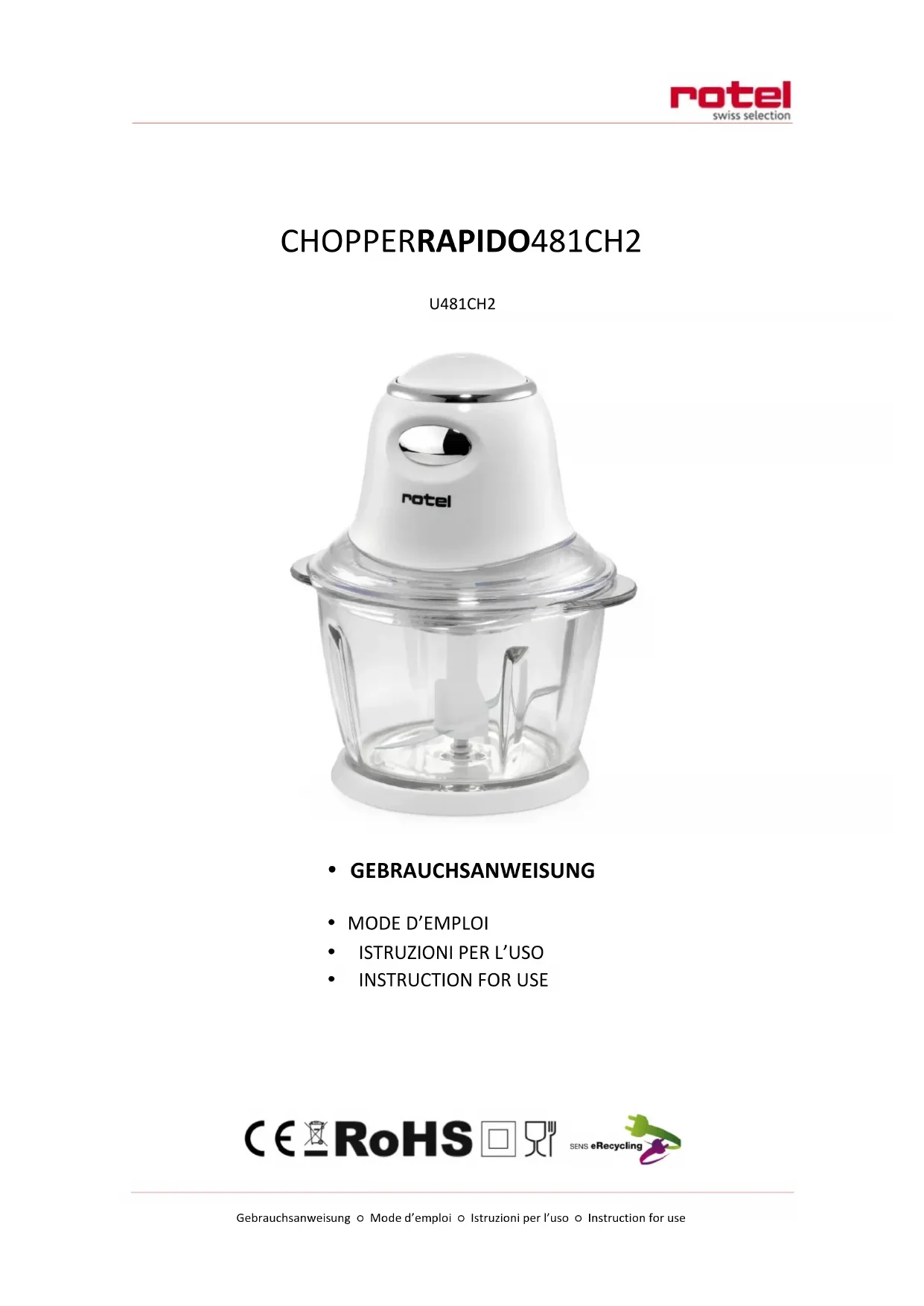 U481CH2 - Robot ménager ROTEL - Notice d'utilisation et mode d'emploi gratuit