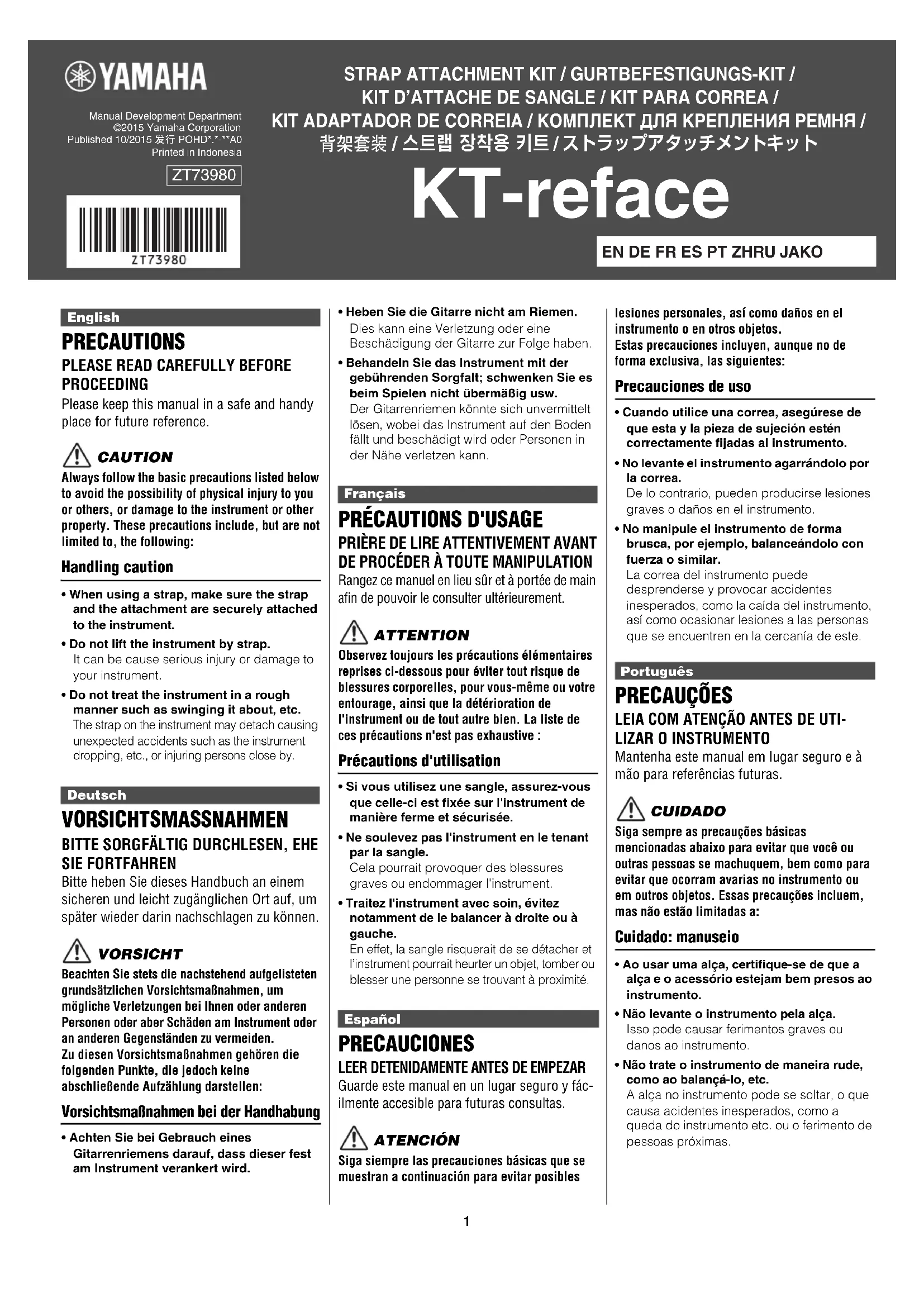 - Traitez l'instrument avec soin, évitez notamment de le balancer à droite ou à gauche. En effet, la sangle risquerait de se détacher et l’instrument pourrait heurter un objet, tomber ou blesser une personne se trouvant à proximité. PRECAUCIONES