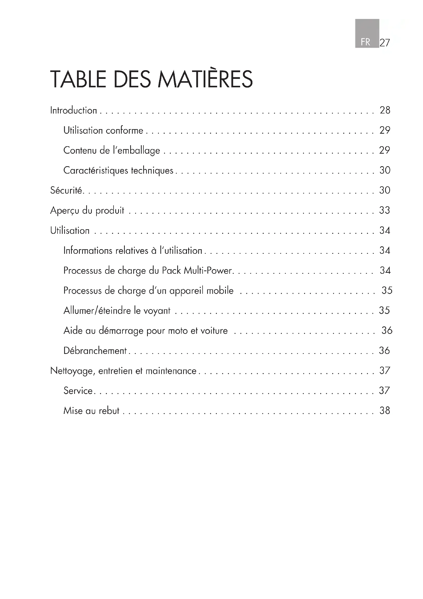 - Aide au démarrage pour moto et voiture p. 36