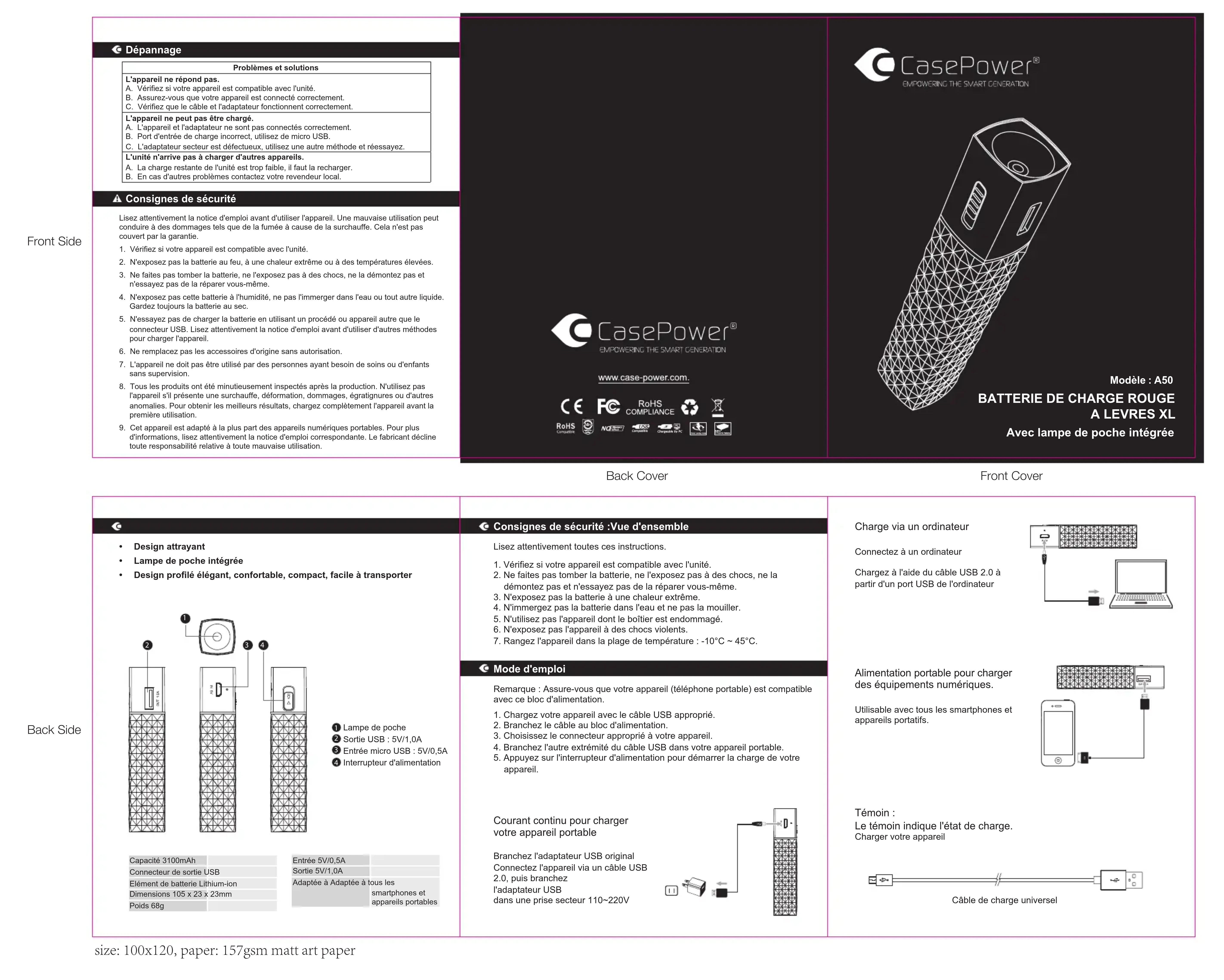 A50 - Batterie portable CasePower - Notice d'utilisation et mode d'emploi gratuit