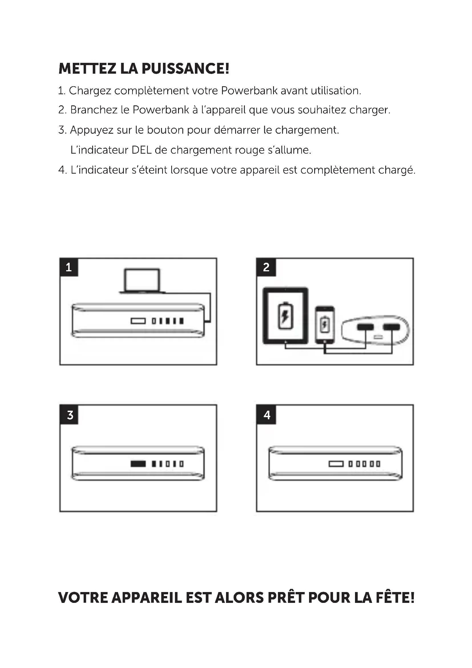 - Chargez complètement votre Powerbank avant utilisation.