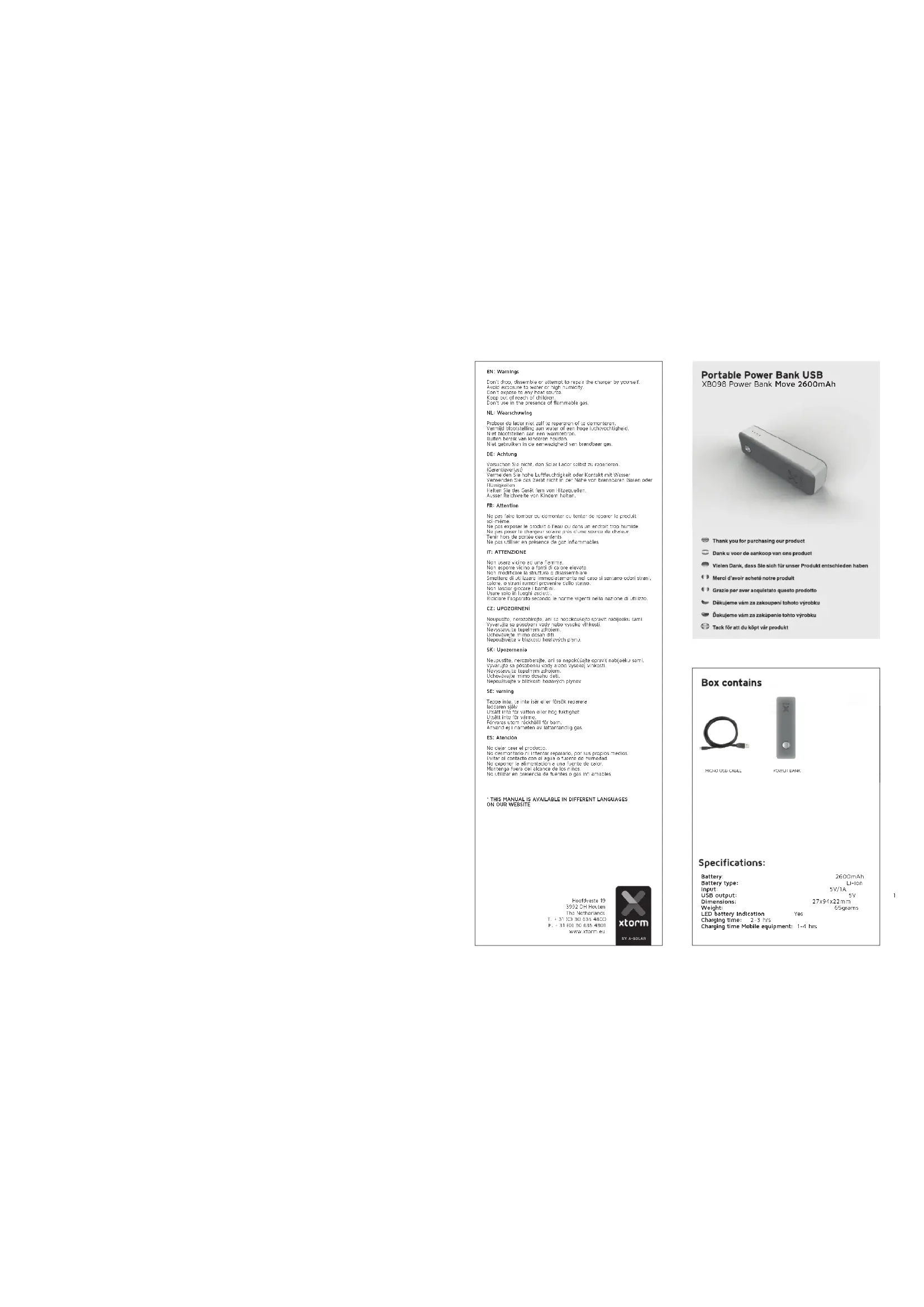 Retrouvez gratuitement la notice de l'appareil Liion 2600 mAh Xtorm au format PDF.